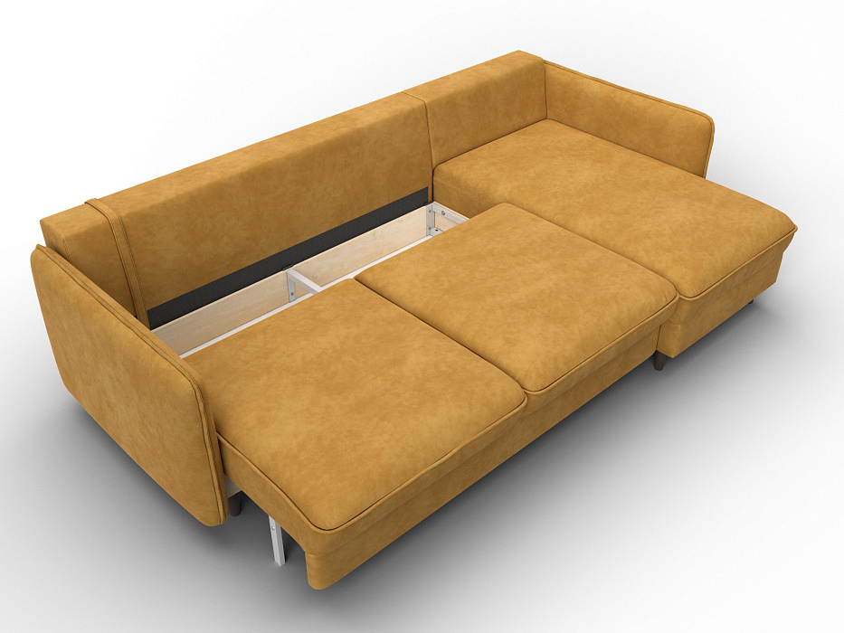 При габаритах: 248x98x163 см подойдет для комнат любых размеров, легко раскладывается, обеспечивая спальное место 142x231 см.