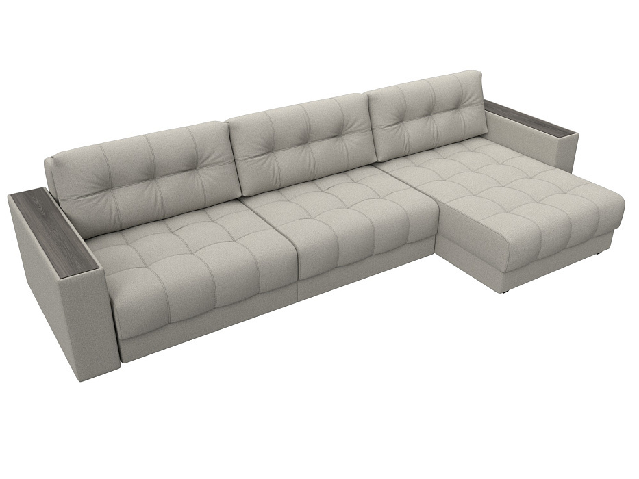 При габаритах: 330x90x158 см подойдет для комнат больших размеров, легко раскладывается, обеспечивая спальное место 143x288 см. Угол дивана универсальный, можно собрать с левым или с правым углом.
