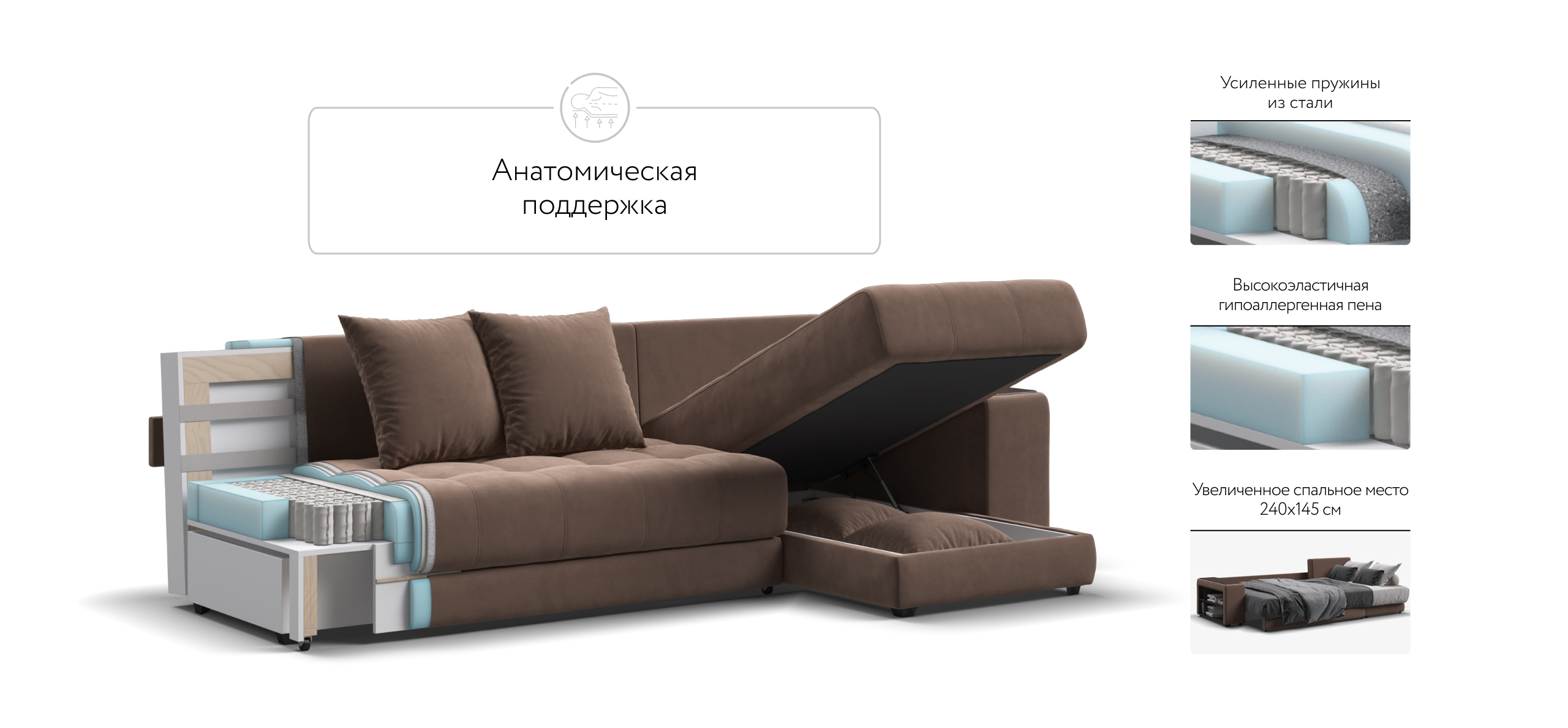 Просторный и очень удобный угловой диван Дубай станет стильным акцентом в Вашей гостиной и любимым местом для отдыха в кругу семьи и друзей. Его широкое сиденье и мягкие подушки с комфортом разместят даже большую компанию.