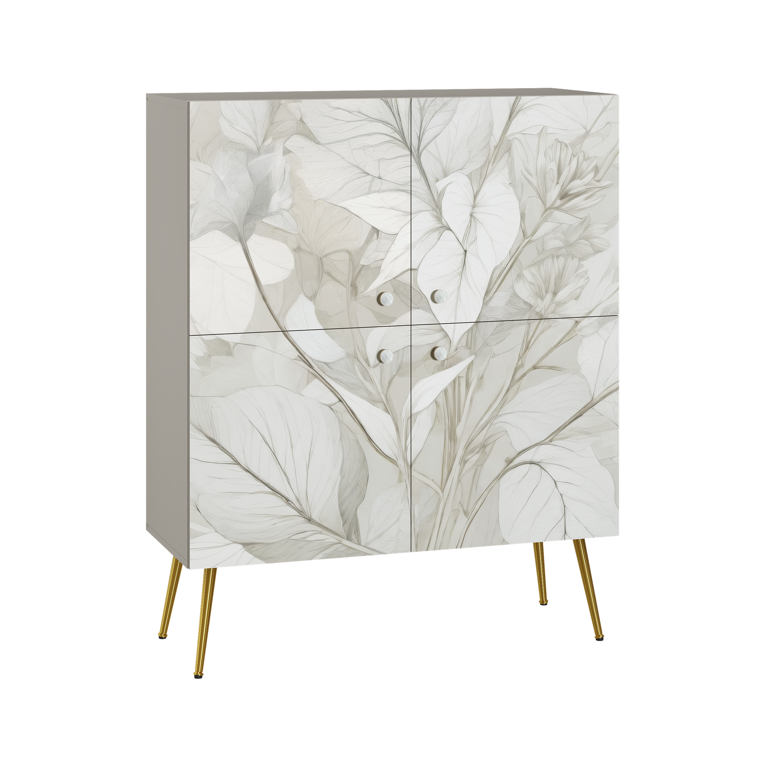 Шкаф Флоу 16.329 выделяется растительным принтом на фасаде, создающими свежий и стильный акцент в интерьере. Металлические ручки и опоры с регулировкой придают конструкции надежность и современный вид. Вместительные отделения, петли с доводчиком и скрытая задняя стенка обеспечивают удобство хранения и аккуратный внешний вид.