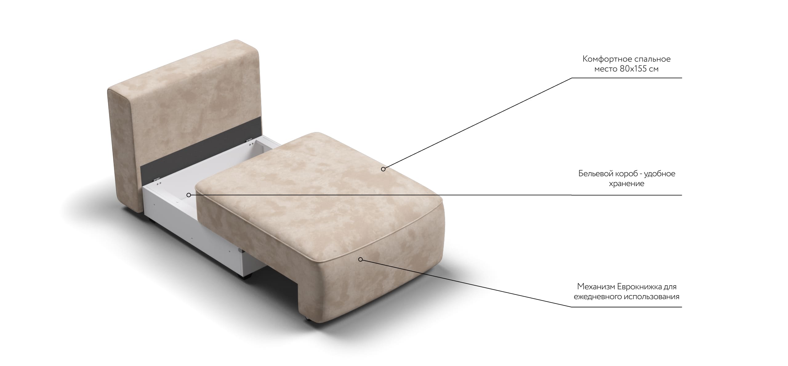 Благодаря простому и надежному механизму еврокнижка модульная система с легкостью превратится в комфортное спальное место.