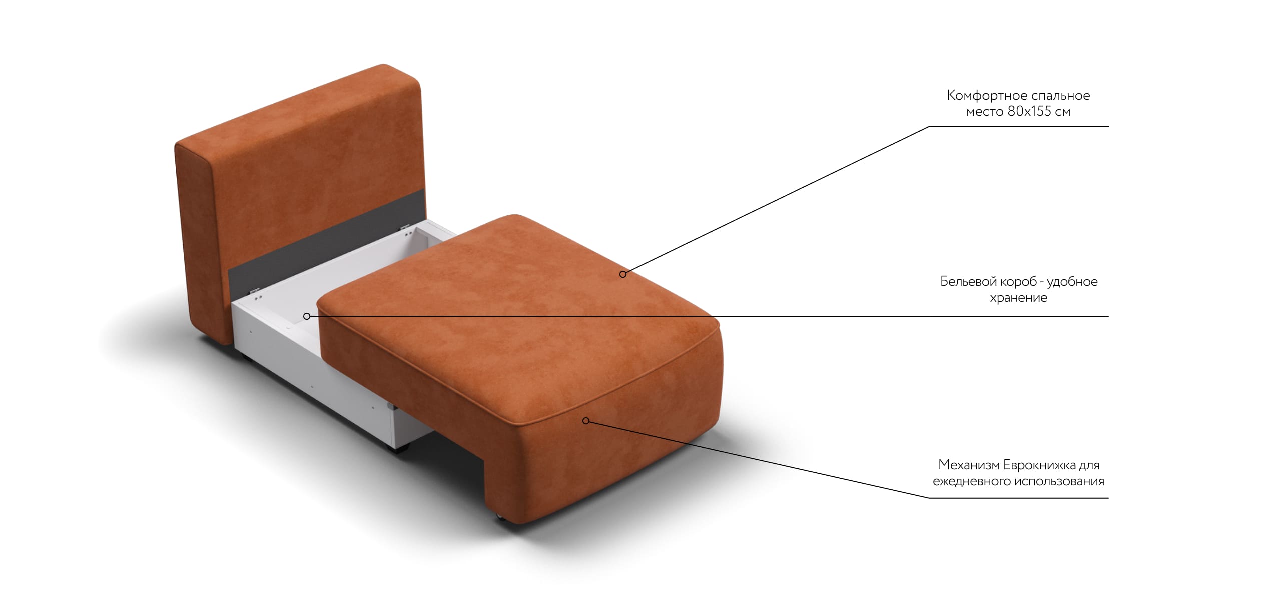 Благодаря простому и надежному механизму еврокнижка модульная система с легкостью превратится в комфортное спальное место.