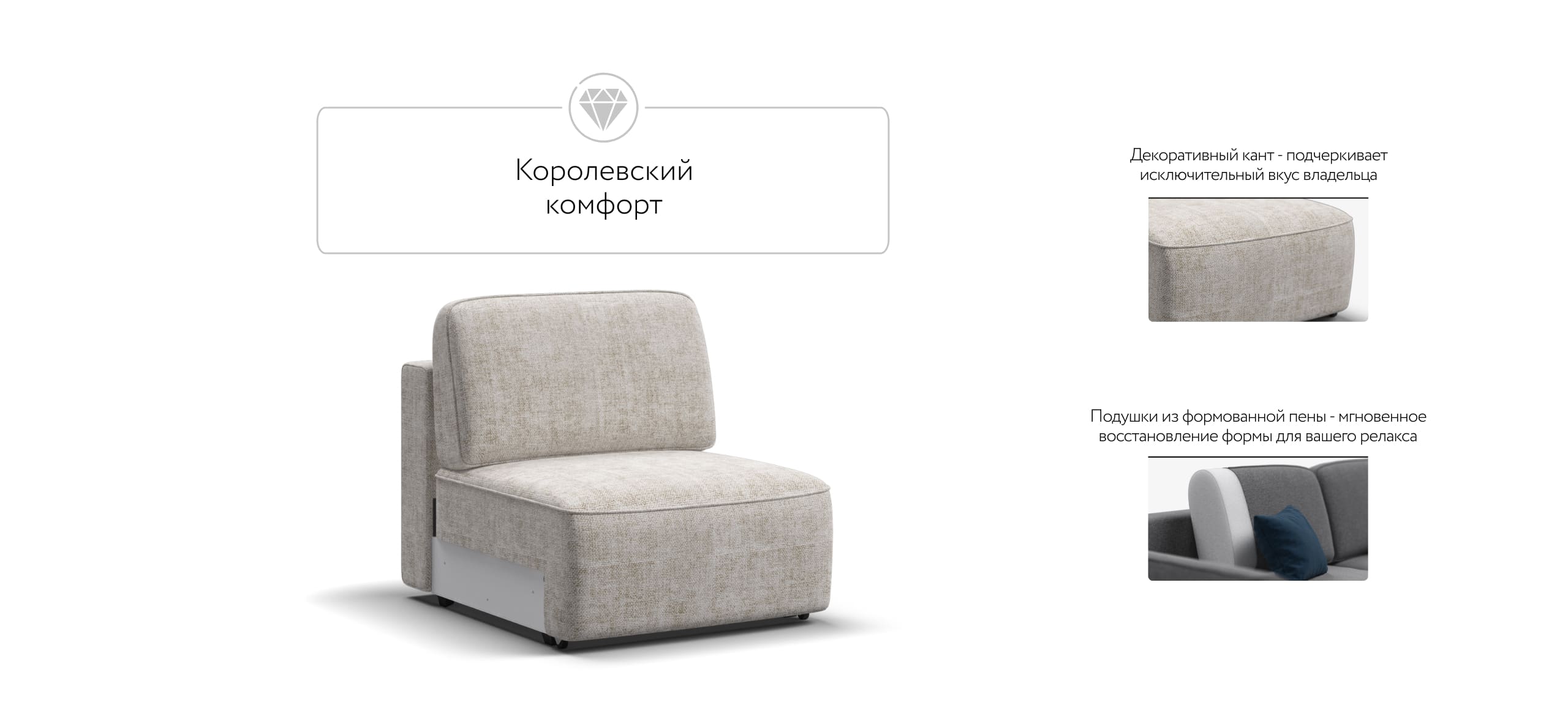 Спальное место Кинг Модуль является частью модульной системы. Супер удобная глубокая посадка сиденья и высокоэластичная пена Эластик Фоам с дополнительным слоем PERIOTEK создадут максимальный комфорт во время отдыха.