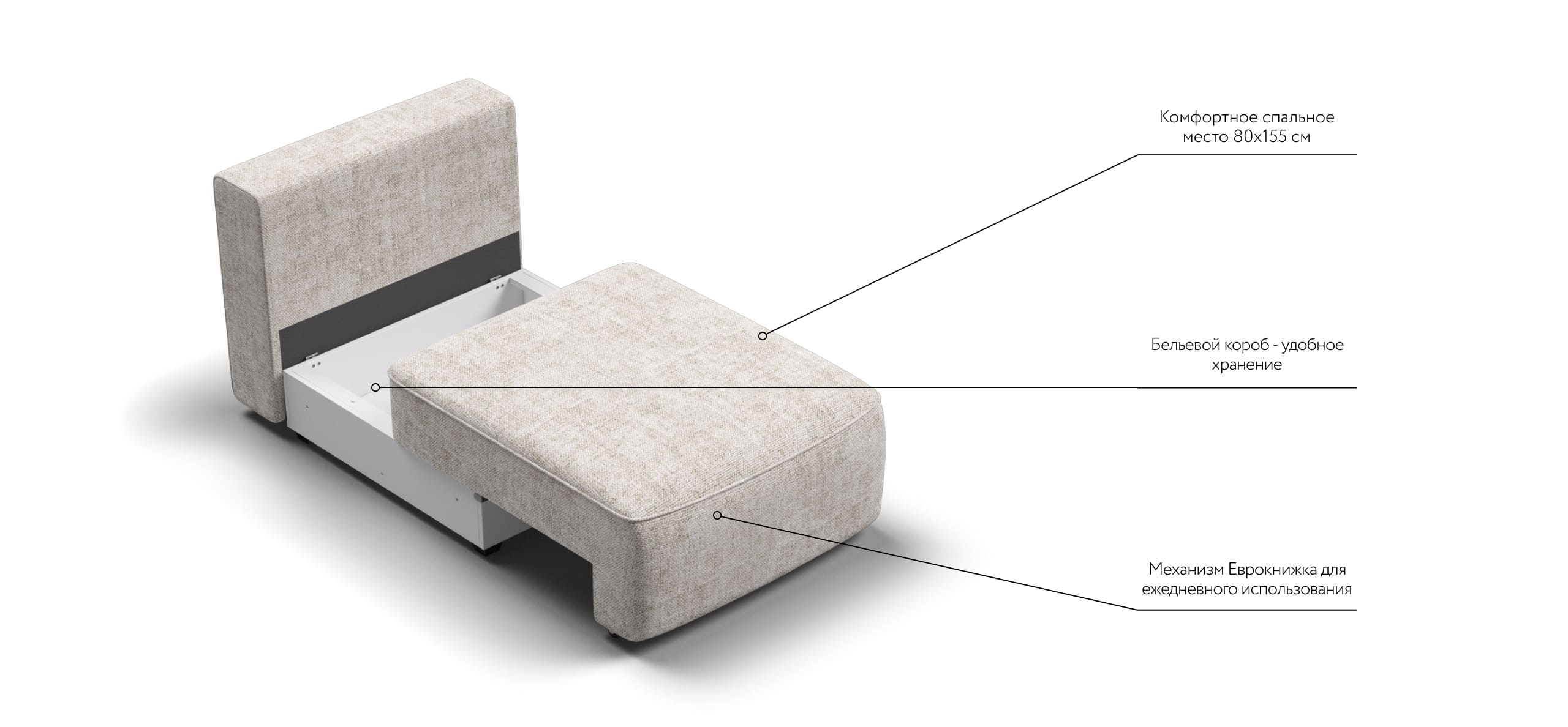 Благодаря простому и надежному механизму еврокнижка модульная система с легкостью превратится в комфортное спальное место.
