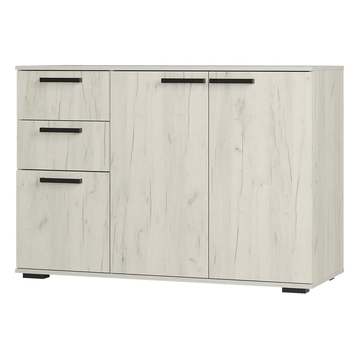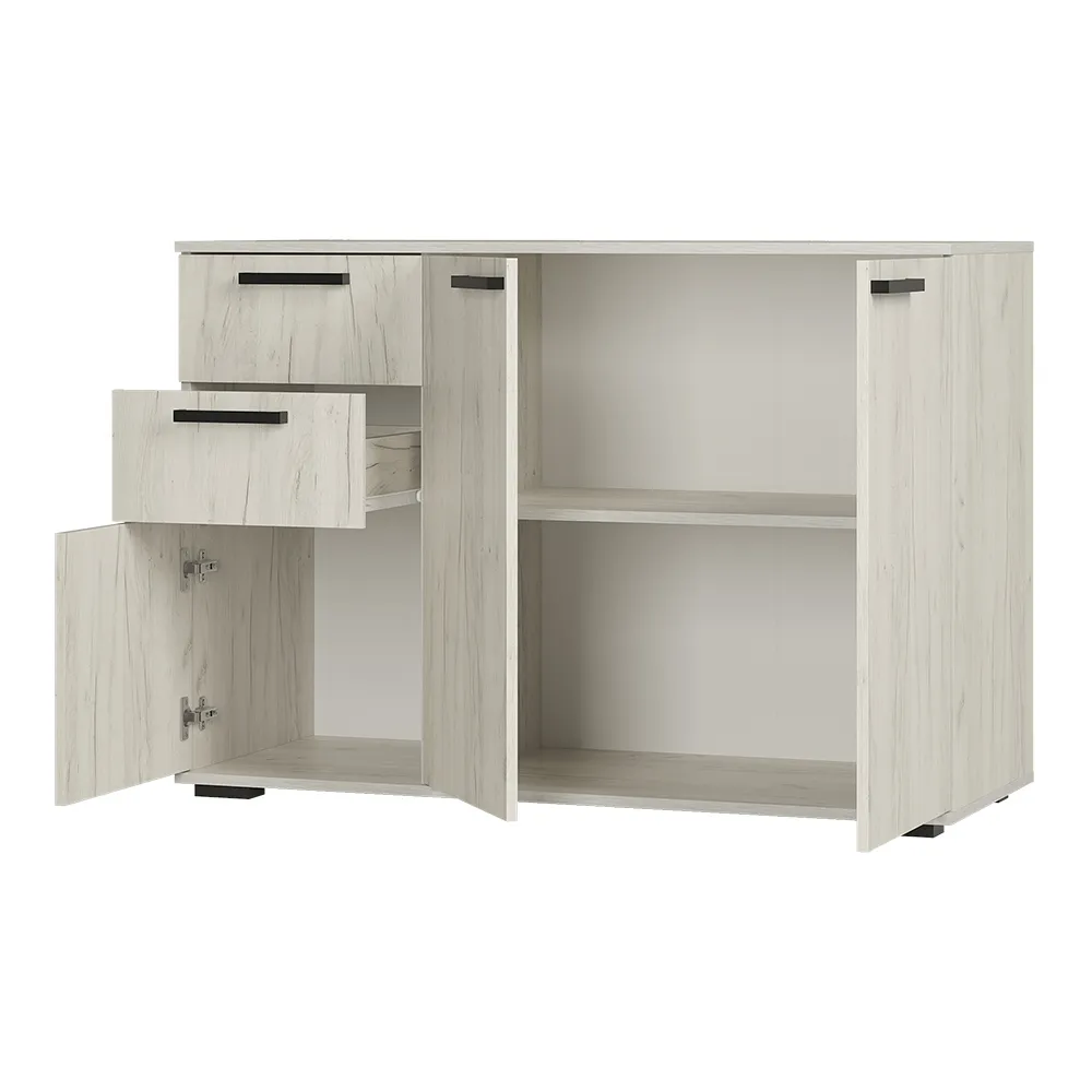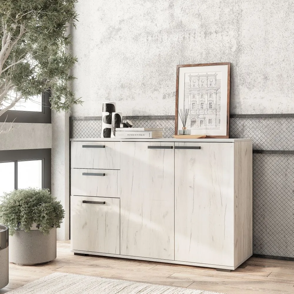 Комод «Стандарт-3 NEW» - классическая модель, которая подойдет для гостиной, спальни или домашнего офиса. Простая прямоугольная форма комода позволит грамотно зонировать пространство. На полках и в просторных выдвижных ящиках удобно хранить как постельное бельё, небольшие предметы одежды и документы. Верхняя зона идеально подойдет для лампы, фотографий, комнатных растений. Новый современный декор в оттенке «дуб крафт белый» дополнит любой интерьер.