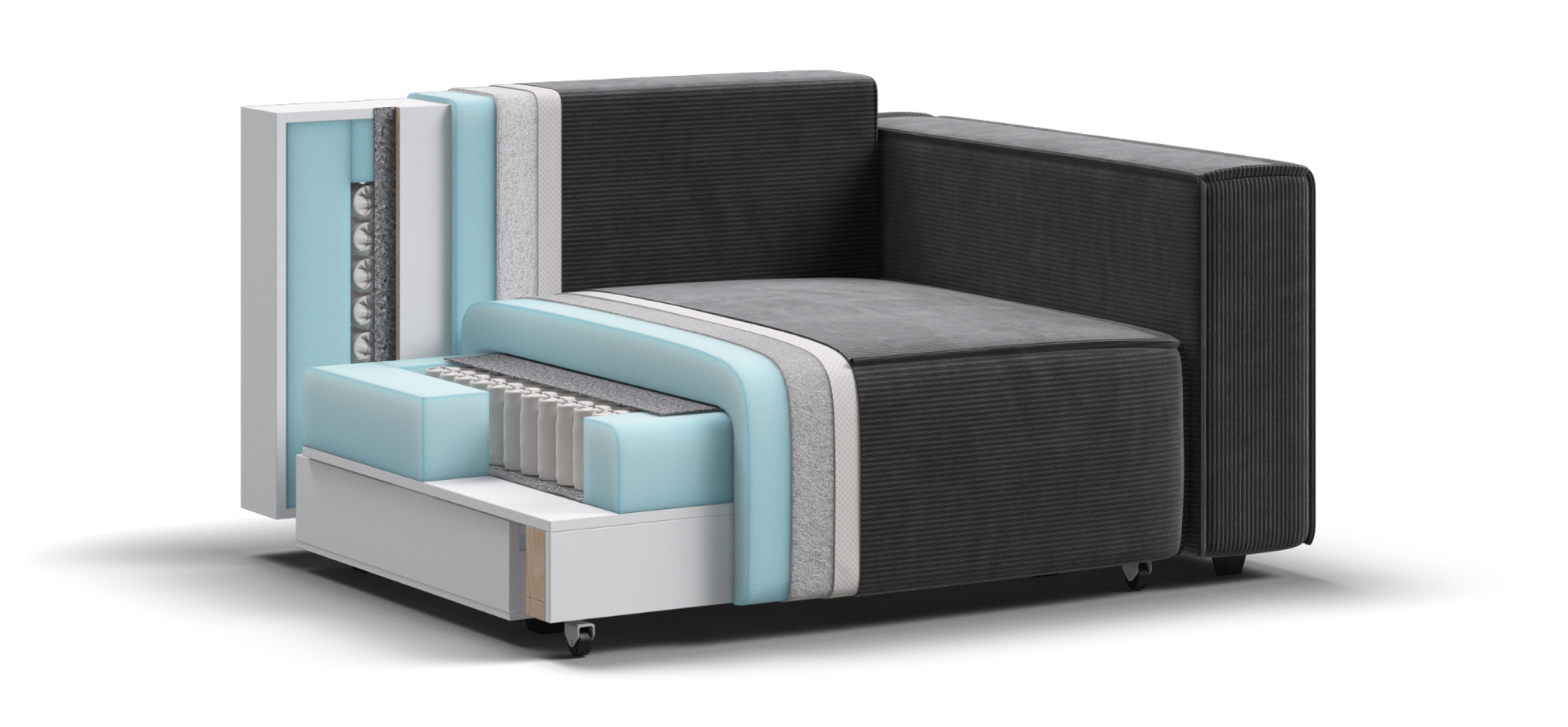 BOSS SOFT Modool – Модульная система в стиле лофт. Сочетание надежности, стиля и функциональности. Суперудобная глубокая посадка и высокоэластичная пена с дополнительным слоем PERIOTEK создадут максимальный комфорт во время отдыха.Широкие прямоугольные подлокотники, строгая симметрия и минималистичная отделка идеально дополнит современный интерьер Вашей гостиной.Модульная система позволит создать любую комбинацию от уютного кресла до огромного дивана для большой компании.Простой и надежный механизм еврокнижка с легкостью превратит модульную систему в комфортное спальное место.