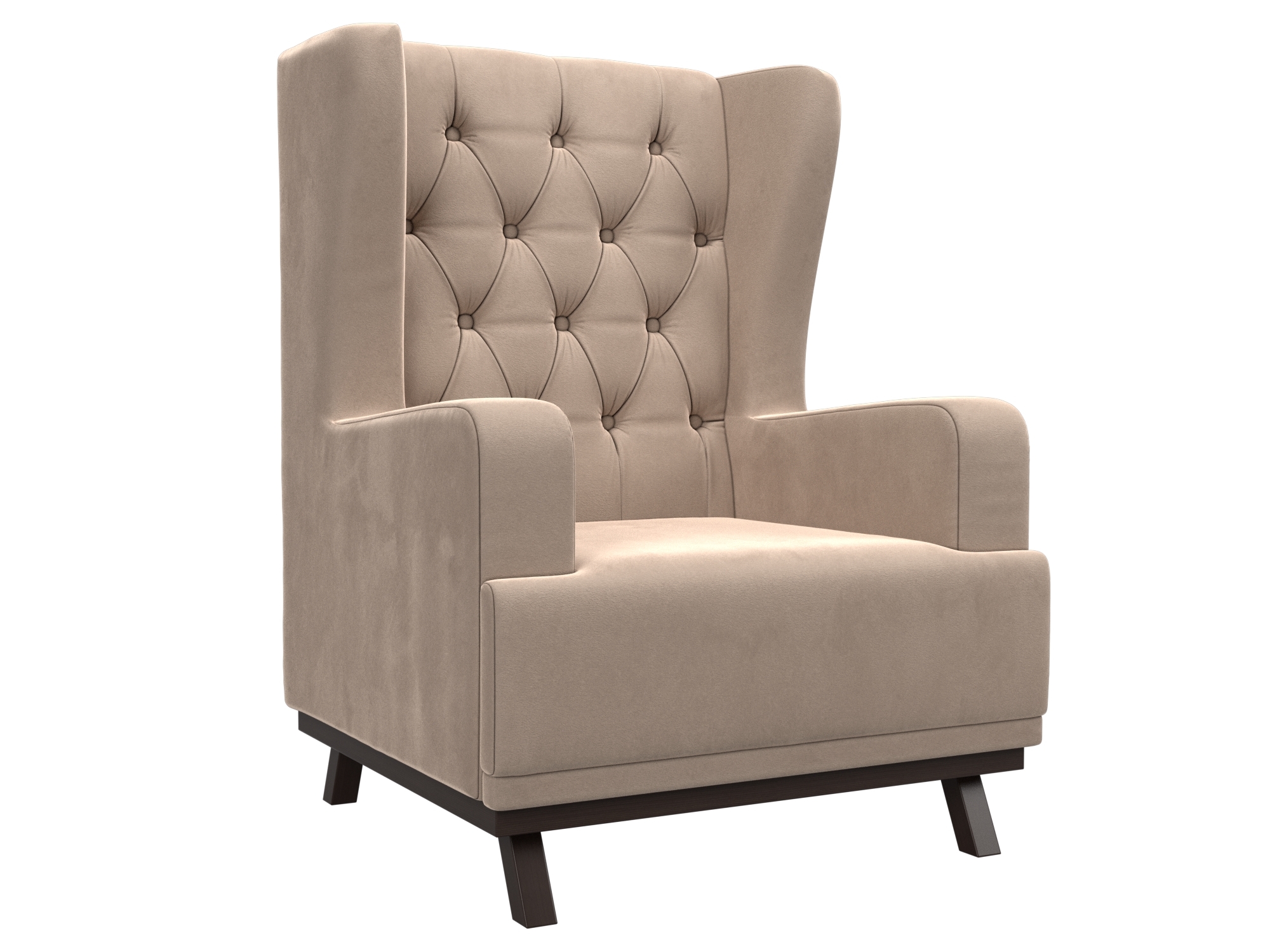 Изысканное кресло для гостиной, обитое мягким велюром, станет украшением вашего интерьера. Компактные размеры (710 мм х 1000 мм х 680 мм) позволяют разместить его даже в небольшом помещении. Каркас из ДВП и ДСП гарантирует прочность и долговечность.