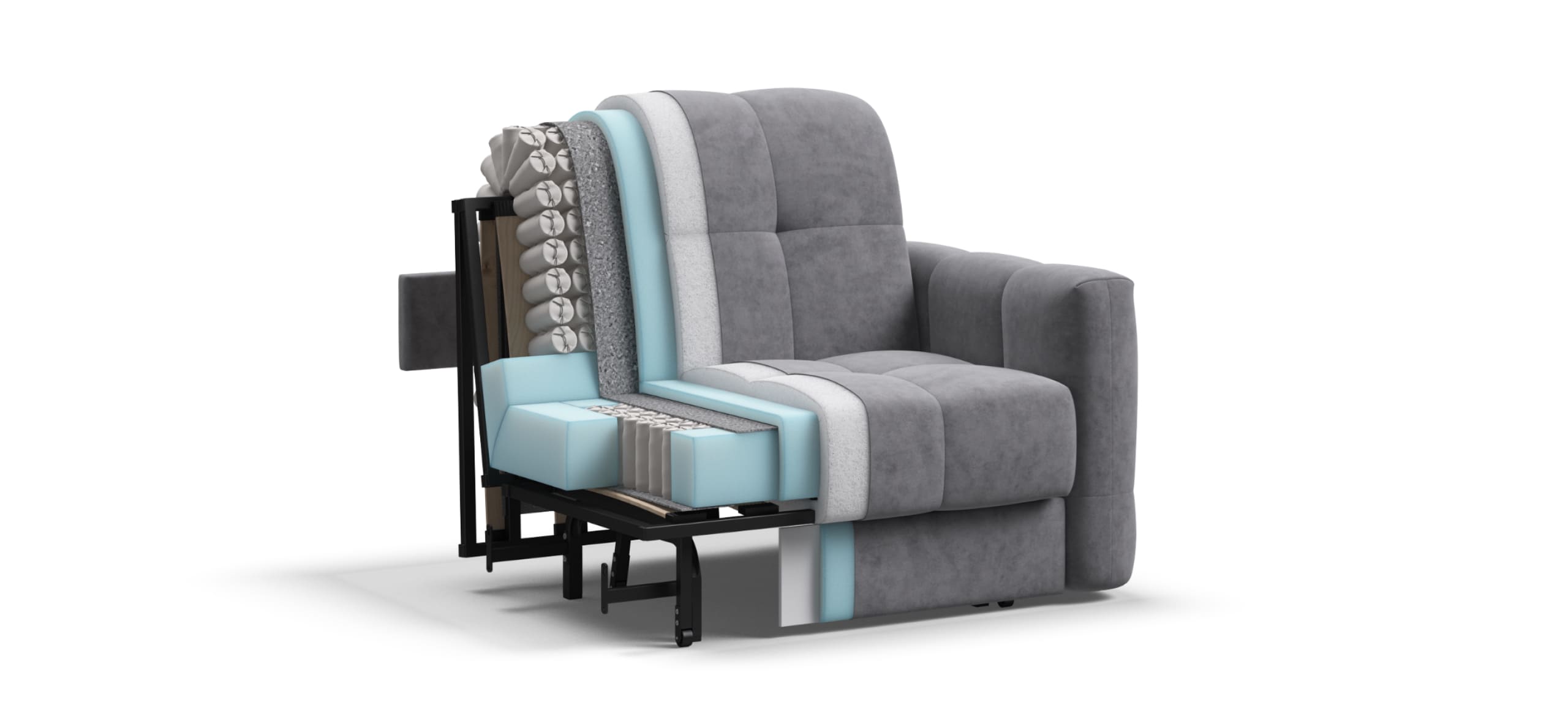 БОСС СЛИП кресло-кровать идеальное дополнение к диванам модельного ряда БОСС СЛИП, а также самостоятельный элемент мебели. Благодаря прочному и надежному механизму аккордеон БОСС ПРО кресло-кровать прекрасно сочетает в себе две функции: комфортный отдых днем и полноценное дополнительное спальное место для гостя или ребенка ночью.Инновационный анатомический матрас БОСС КВАЛИТИ в диване, высотой 15 см., выполнен из полноценного независимого пружинного блока БОСС ФИТ и высокоэластичной пены ФЛЕКС – гарантия здорового сна, как на кровати!Чехол БОСС РОЯЛ с ультропышной стежкой на холконе и усиленными утяжками делает кресло пышным и воздушным, а усиленные утяжки надежно фиксируют чехол и защищают его от растяжения.