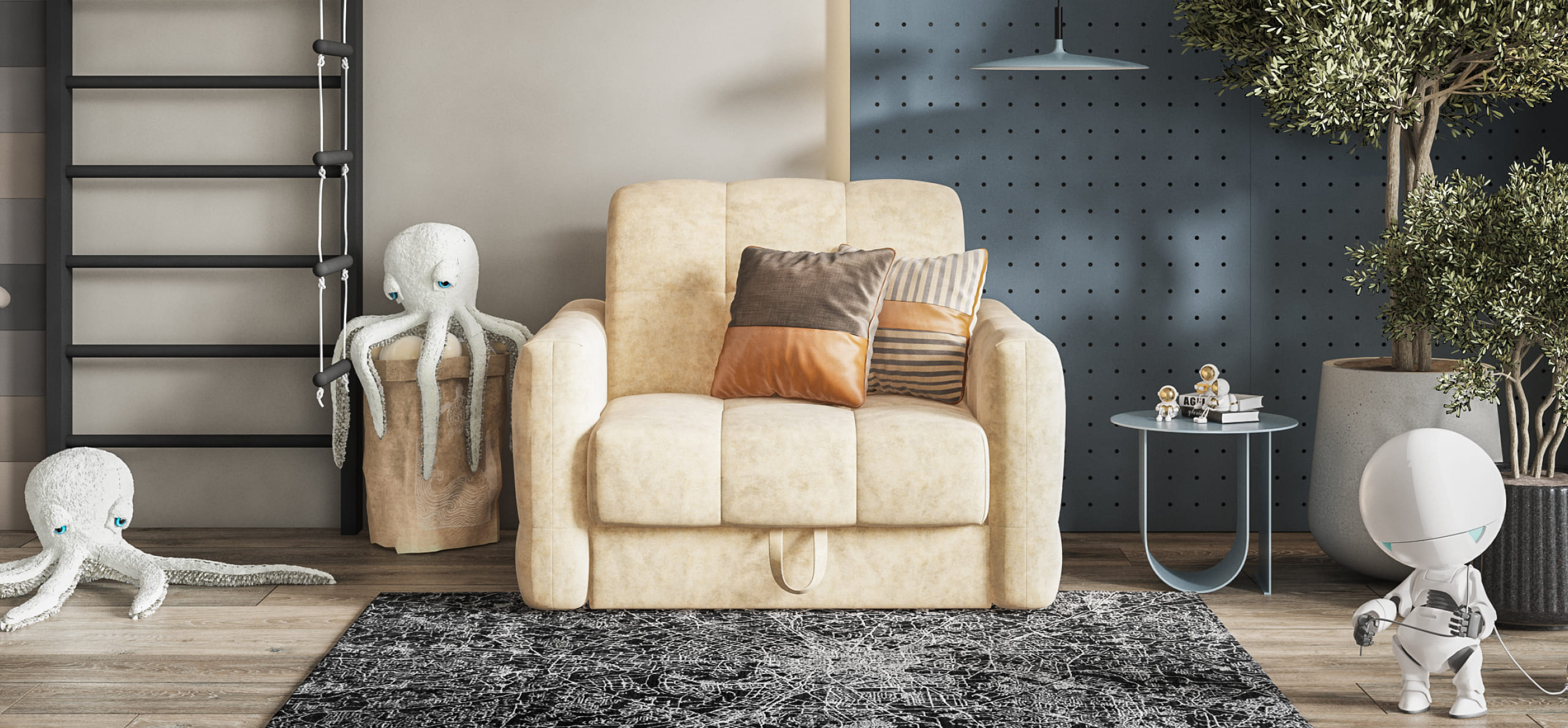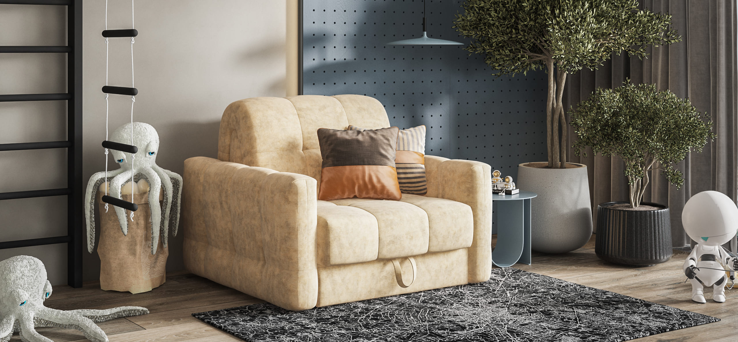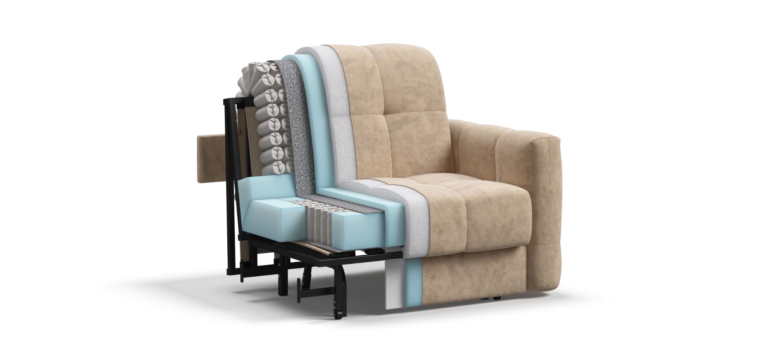БОСС СЛИП кресло-кровать идеальное дополнение к диванам модельного ряда БОСС СЛИП, а также самостоятельный элемент мебели. Благодаря прочному и надежному механизму аккордеон БОСС ПРО кресло-кровать прекрасно сочетает в себе две функции: комфортный отдых днем и полноценное дополнительное спальное место для гостя или ребенка ночью.Инновационный анатомический матрас БОСС КВАЛИТИ в диване, высотой 15 см., выполнен из полноценного независимого пружинного блока БОСС ФИТ и высокоэластичной пены ФЛЕКС – гарантия здорового сна, как на кровати!Чехол БОСС РОЯЛ с ультропышной стежкой на холконе и усиленными утяжками делает кресло пышным и воздушным, а усиленные утяжки надежно фиксируют чехол и защищают его от растяжения.