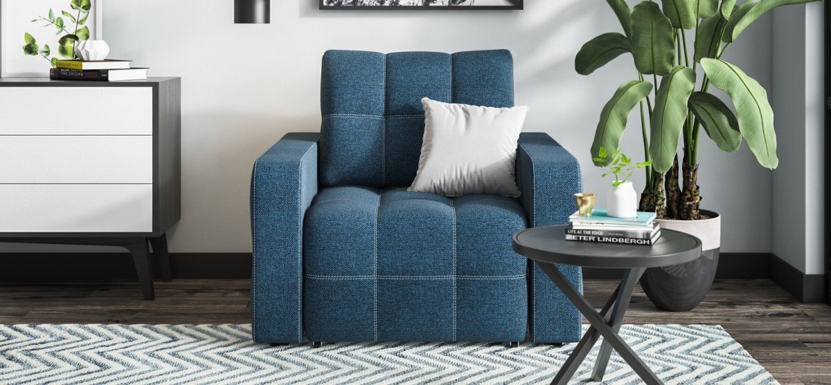 Денди кресло-кровать с механизмом изи ролл, которое отлично дополняет линейку диванов Денди. Легким движением руки кресло раскладывается в удобную кровать.
