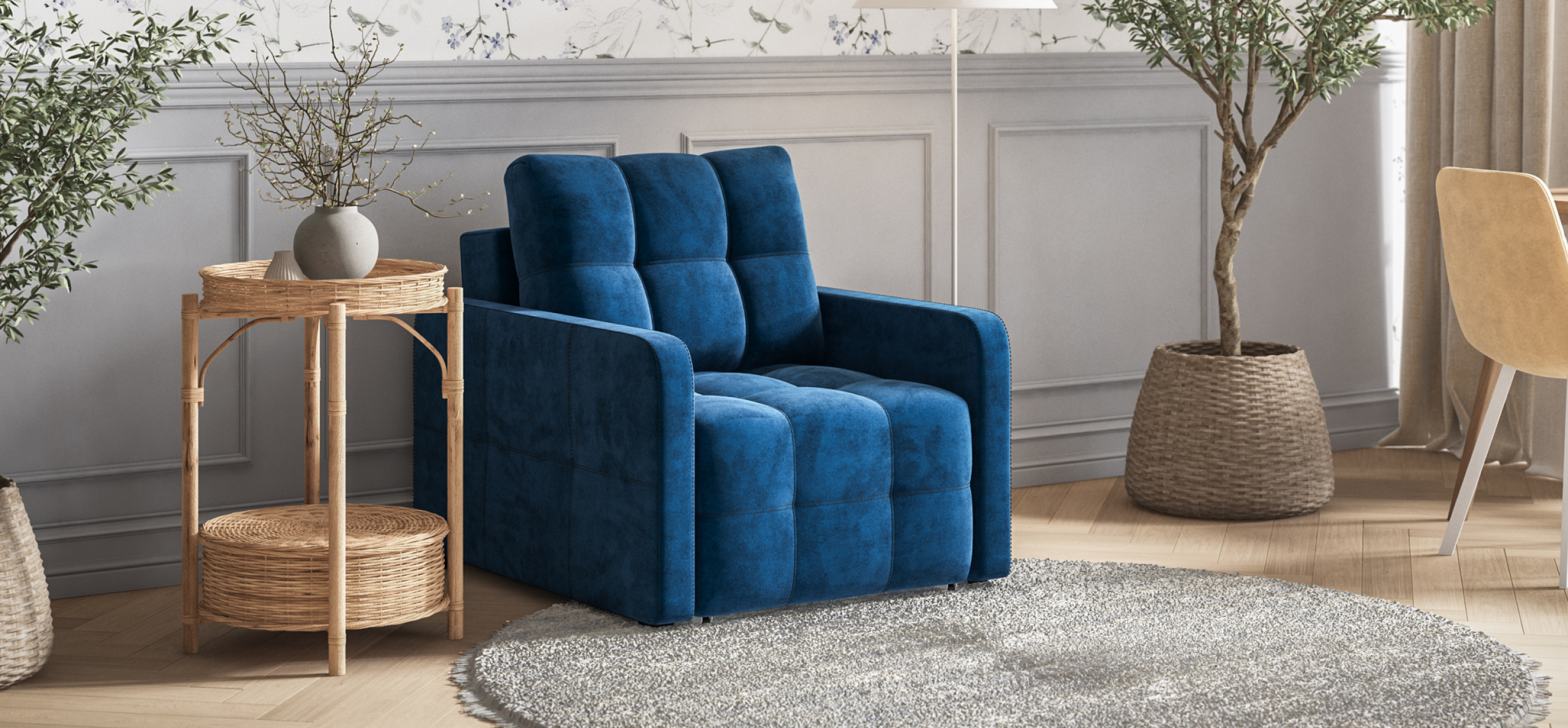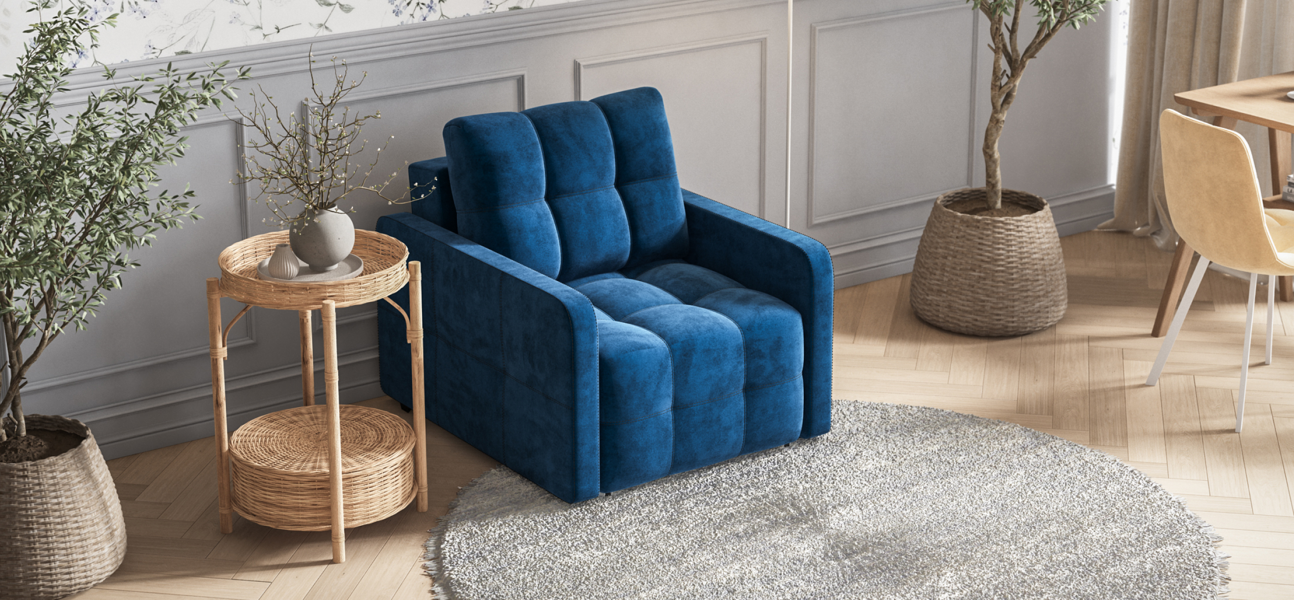Кресло-кровать Денди Слим Велюр Монолит синий