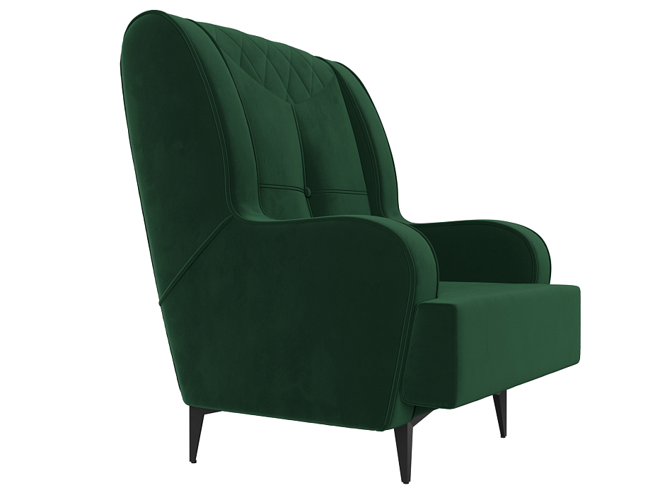 Погрузитесь в мир комфорта и элегантности с нашим велюровым креслом, созданным для вашей гостиной. Изысканный дизайн и глубокий зеленый цвет обивки придают креслу неповторимый стиль, который станет ярким акцентом в вашем интерьере. **Размеры кресла (720 мм х 1010 мм х 770 мм)** идеально подходят для уютного отдыха, а мягкий **велюр** приятен на ощупь и создает ощущение тепла.