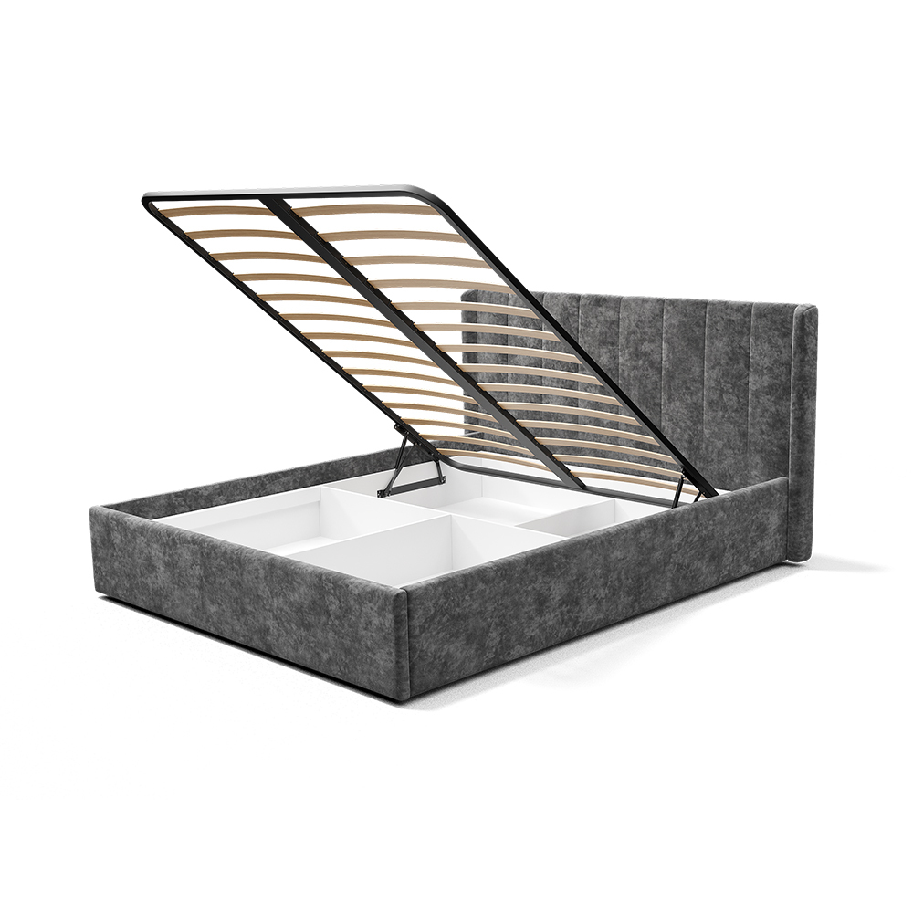 Кровать может комплектоваться ортопедическим основанием с подъемным механизмом, ЛДСП настилом, ДСП проложками или реечным настилом. Также может комплектоваться опорами "звезда" в золотом или черном цвете. Любое из этих оснований и опоры приобретаются отдельно. Место под ортопедическое основание - 1604*2010 мм.