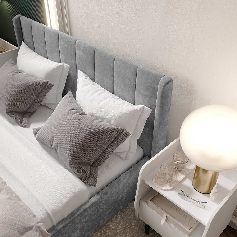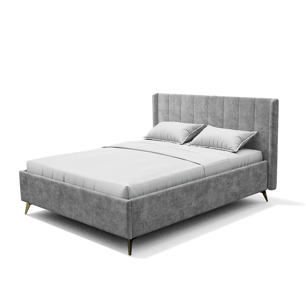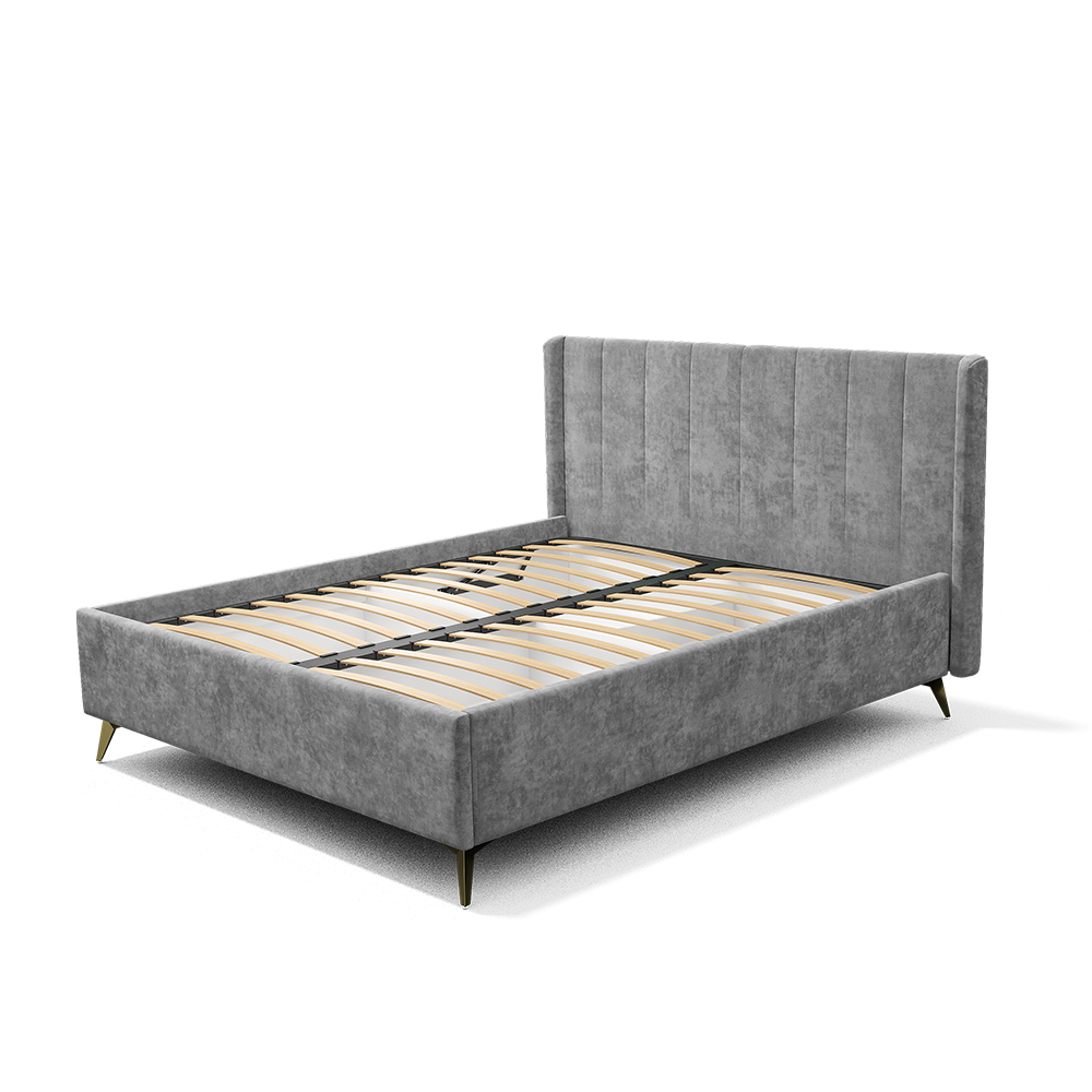 Материал мягких частей - велюр, задняя сторона - спанбонд серый. Декор изголовья - стежка.