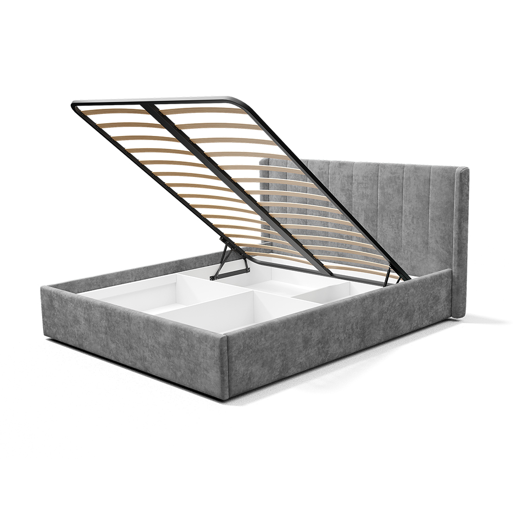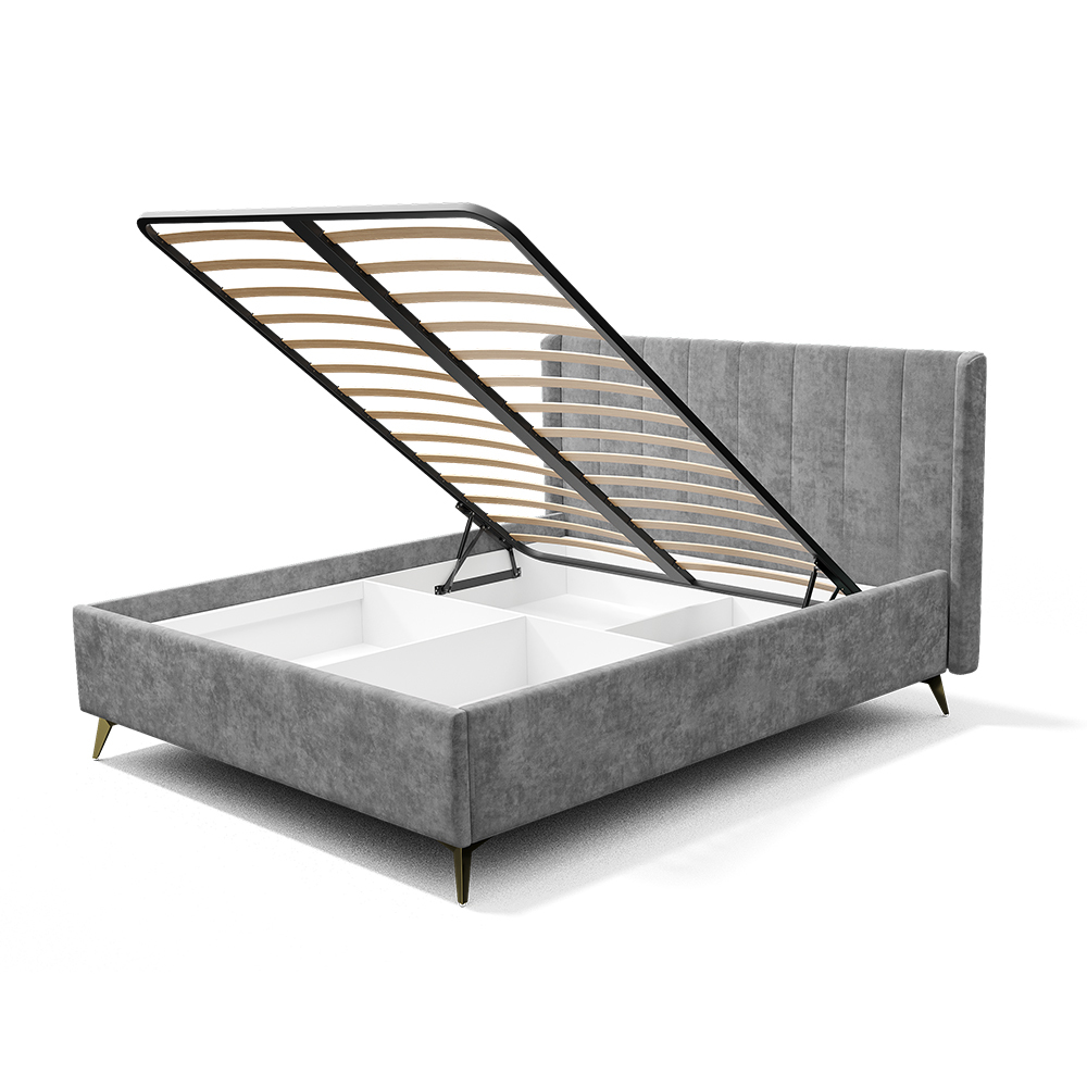 Кровать может комплектоваться ортопедическим основанием с подъемным механизмом, ЛДСП настилом, ДСП проложками или реечным настилом. Также может комплектоваться опорами "звезда" в золотом или черном цвете. Любое из этих оснований и опоры приобретаются отдельно.