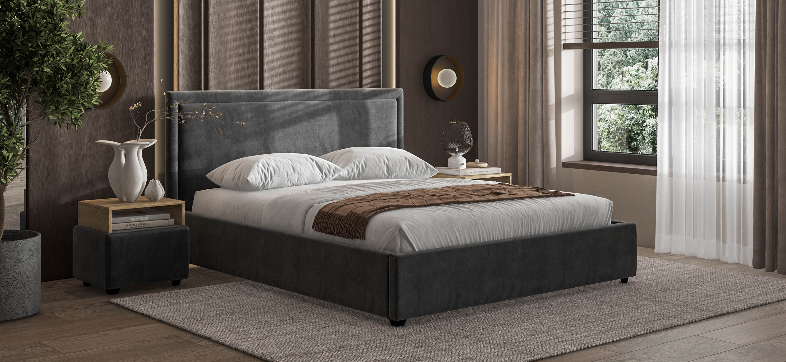 Фрея Кровать+ПМ 160 Велюр Монолит серый – купить за 34 999 ₽ | Альфамебель