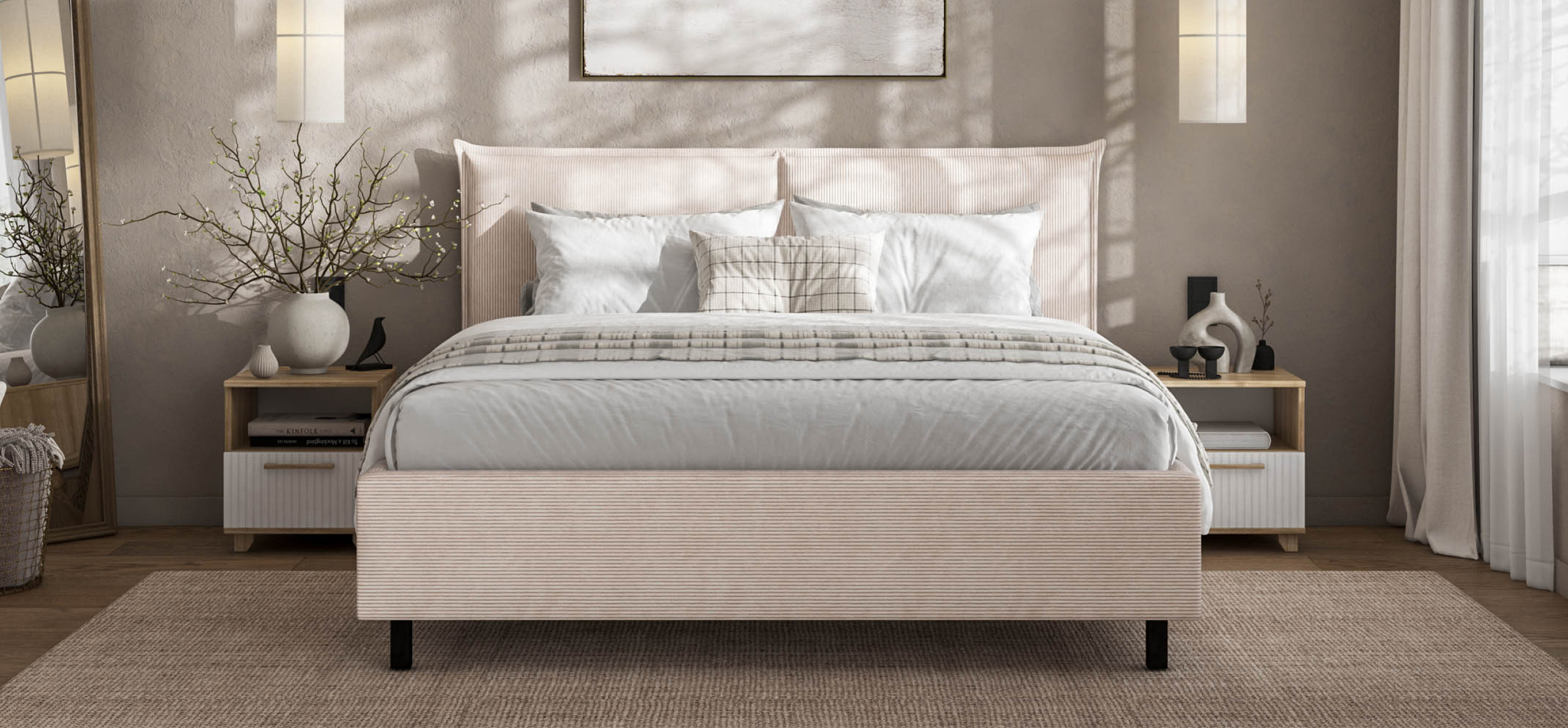Кровать ЛЕО: Скандинавская роскошь и функциональность в каждом элементе Представляем кровать ЛЕО, созданную для тех, кто ценит уют, стиль и практичность. Эта кровать, выполненная в скандинавском стиле, идеально впишется в современный интерьер, создавая атмосферу тепла и элегантности.Преимущества:Мягкое изголовье и изысканный текстиль. Обивка из ультрамягкого вельвета CORD с бархатистой структурой создаёт уют и комфорт. Оптимальная ширина рубчика придаёт ткани стильный и современный вид, дополняя интерьер и делая отдых перед сном особенно приятным.Металлический каркас для долговечности. Каркас кровати выполнен из высокопрочного металлического профиля, что гарантирует стойкость к нагрузкам и длительный срок службы. Кровать не ломается и не деформируется даже при интенсивной эксплуатации.Простота уборки. Высокие ножки не только придают кровати визуальную лёгкость, но и обеспечивают удобство уборки — вы без труда сможете пылесосить пространство под кроватью.