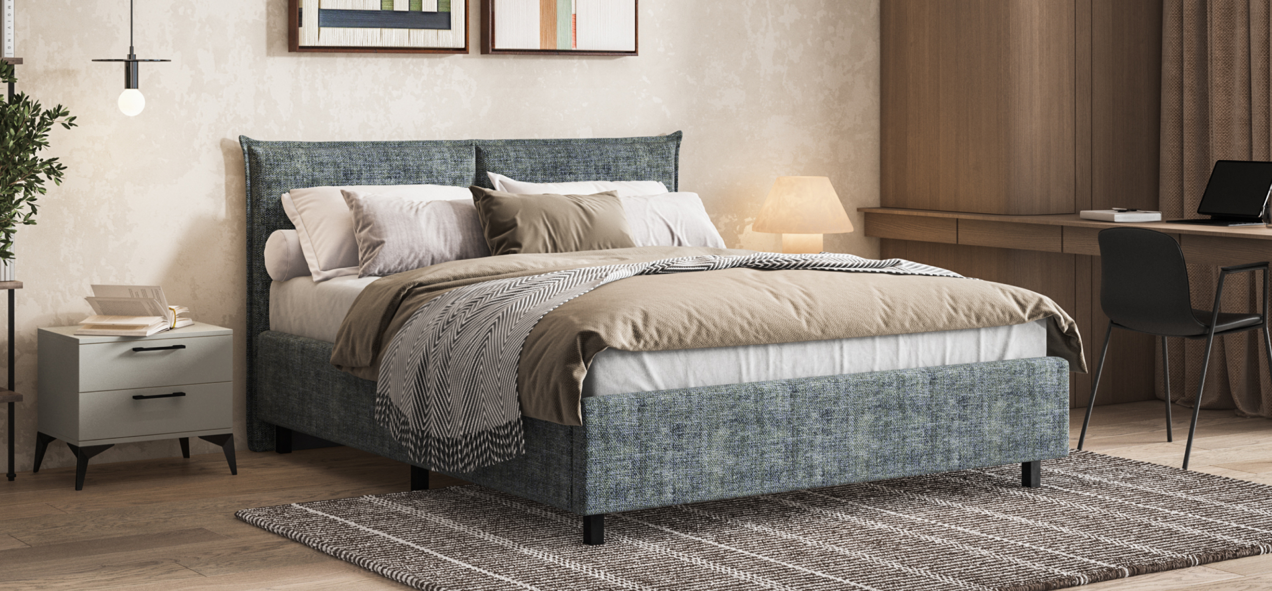 Мягкое изголовье и изысканный текстиль. Обивка из ультрамягкого вельвета CORD с бархатистой структурой создаёт уют и комфорт. Оптимальная ширина рубчика придаёт ткани стильный и современный вид, дополняя интерьер и делая отдых перед сном особенно приятным.