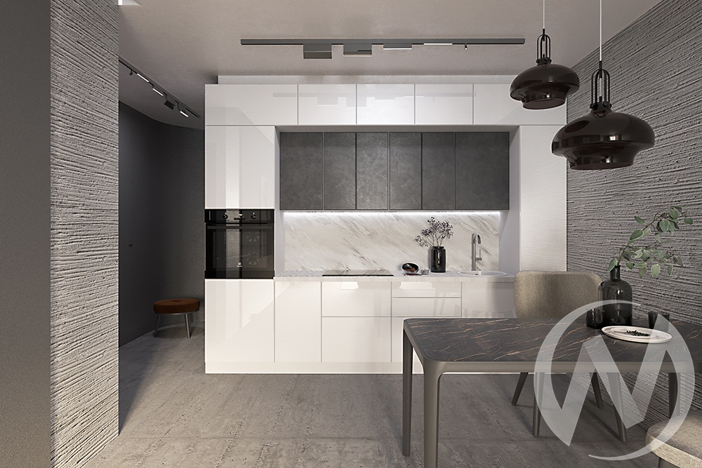 Кухня "Хелмер/Валерия" Бетон/Белый глянец