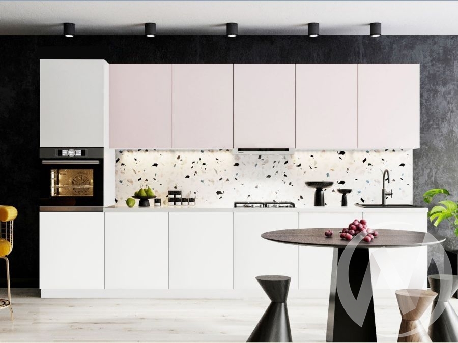 Кухня "Мемфис" Комплектация 2. Чарующее сочетание изысканных оттенков в комбинации с комфортом использования делает данную модель мебели превосходным вариантом для кухни в современном воплощении. Благодаря такой идеальной гармонии светлых и нежных цветов (японский шёлк и белый софт), на вашей кухне всегда будет светло и уютно, а при разумном сочетании модулей вы сможете создать приятное и комфортное пространство для приготовления любимых блюд. К вашему выбору представлены как закрытые варианты шкафов, так и шкафов с круглыми стеклянными ставками, которые смело дополняют общую картину интерьера и смотрятся вполне необычно, но при этом очень уместно. Вам совершенно не стоит бояться светлых оттенков гарнитура на кухне, поскольку материал, из которого он изготовлен, легко поддаётся в уборке, поэтому вам не придётся утруждать себя, поддерживая чистоту мебели.
