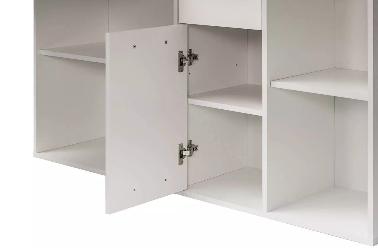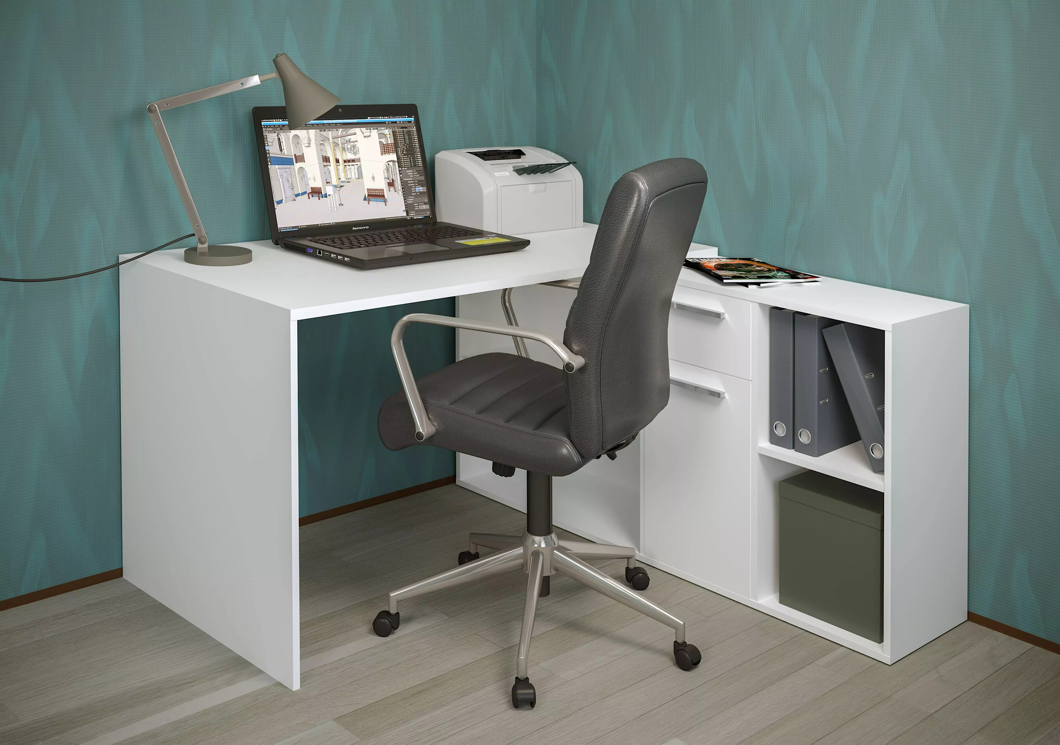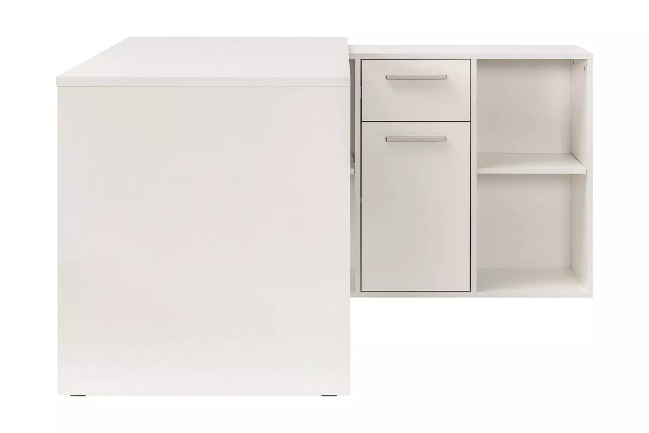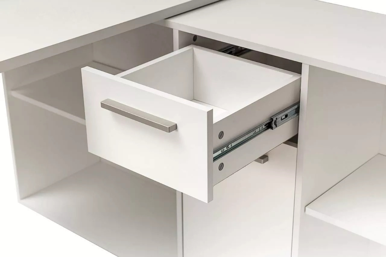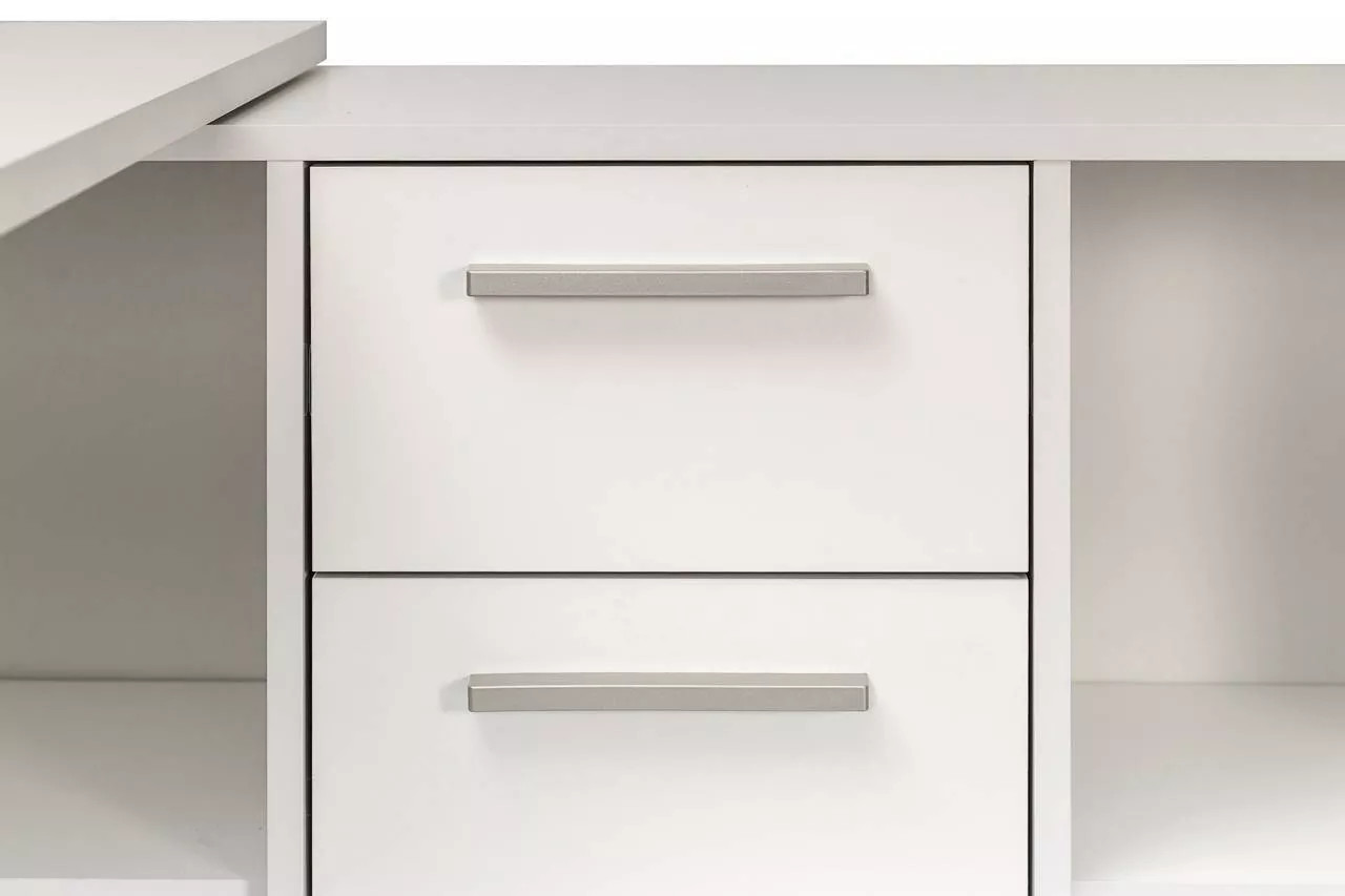Стол письменный «Лайт» — это многофункциональное решение для рабочего пространства, допускающее сборку как в угловом, так и в линейном исполнении, в зависимости от предпочтений пользователя. Эта модель будет уместна и в комнате учащегося, и при обустройстве рабочего места на дому. Просторная рабочая поверхность позволяет удобно расположить ноутбук, светильник и канцелярские товары. Система хранения включает в себя тумбу с четырьмя открытыми отделениями различного объема, один закрытый шкаф с внутренней полкой и выдвижной ящик. Благодаря такой организации, поддержание порядка на рабочем столе становится простым, а все необходимые предметы всегда находятся в зоне досягаемости. Дверца снабжена надежными петлями с четырьмя шарнирами, а выдвижной ящик функционирует на шариковых направляющих, обеспечивающих его полное выдвижение. В качестве ручек используется ABS-пластик, имитирующий цвет сатина.