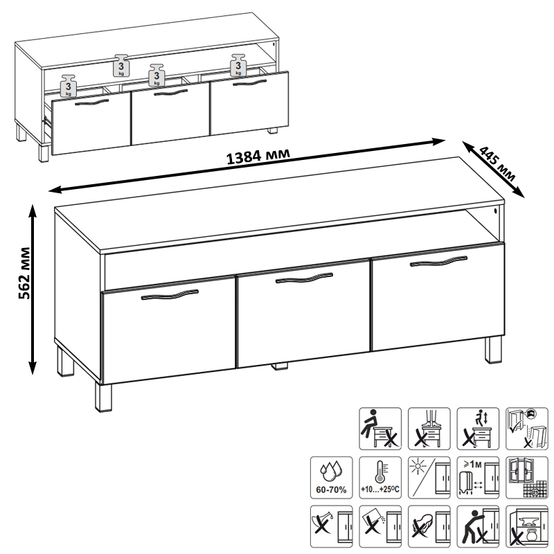 1384 х 445 х 562 мм
