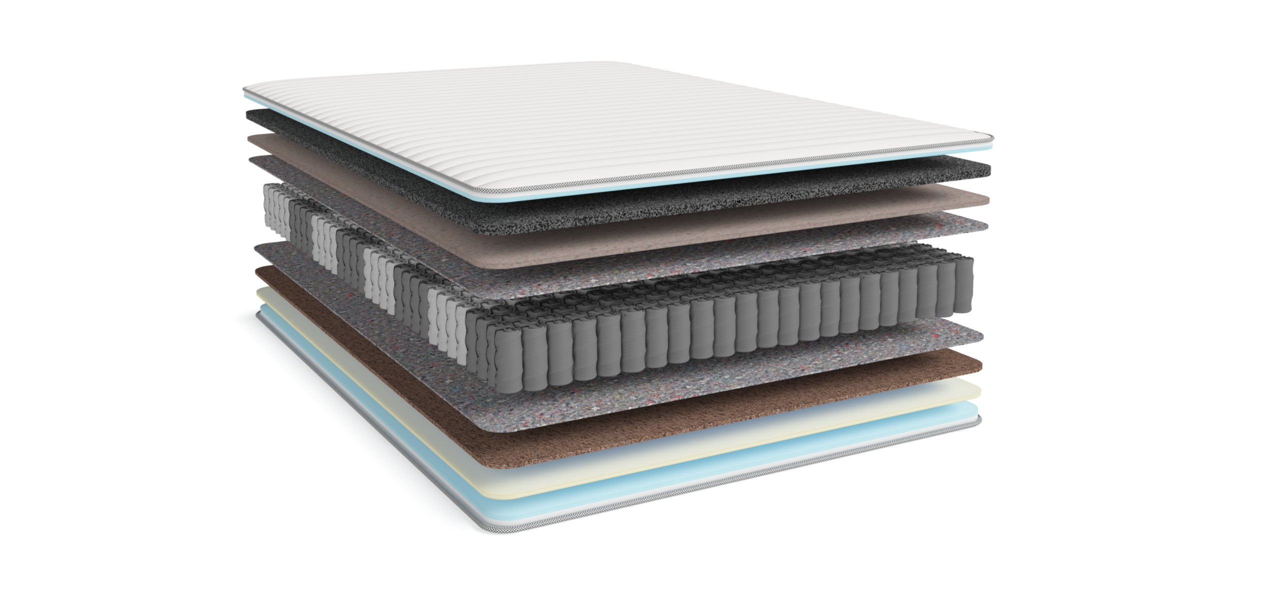 Матрас имеет в своём составе инновационный экологически чистый материал ECO LATEX, обладающий всеми свойствами натурального латекса, обеспечивающий анатомически правильную поддержку тела во время сна. Слой гипоаллергенной пены с угольной пропиткой CARBOAN FOAM препятствует развитию вредных микроорганизмов, не накапливает пыль и снимает мышечное напряжение. Натуральная латексированная кокосовая койра обеспечивает анатомически правильную жесткость спального места.