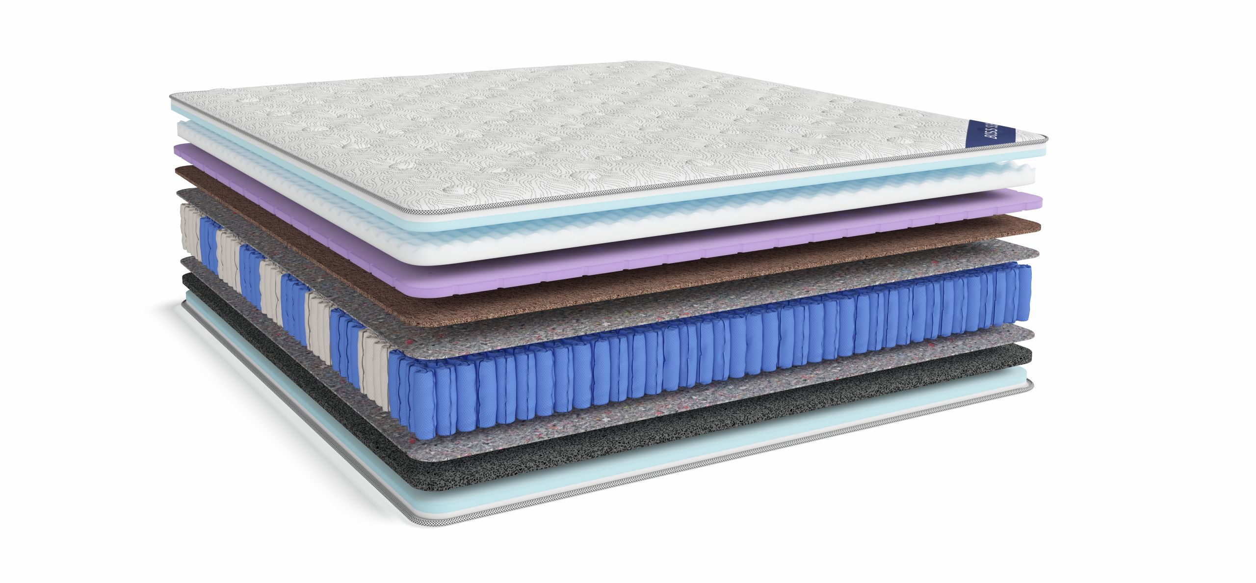 - Высокий двусторонний матрас King сочетает в себе превосходную систему поддержки и лучшие современные материалы. Основа матраса - 10 зональный технологичный пружинный блок KING SPRING (1500 пружин на спальное место), равномерно распределяющий нагрузку по всей поверхности матраса. Матрас имеет разную жесткость сторон. С одной стороны, используется жесткое кокосовое полотно, антибактериальная пена с углем CARBONE FOAM и инновационный упругий латекс с экстрактом лаванды, которая обладает успокоительным эффектом, стабилизирует нервную систему, помогает быстрее расслабиться и уснуть. С другой стороны, используется менее жесткий сизаль, выдерживающий интенсивные нагрузки, антибактериальная пена с углем CARBONE FOAM и мягкая, пористая пена с эффектом памяти MEMORIX, которая бережно подстраивается под контуры тела.