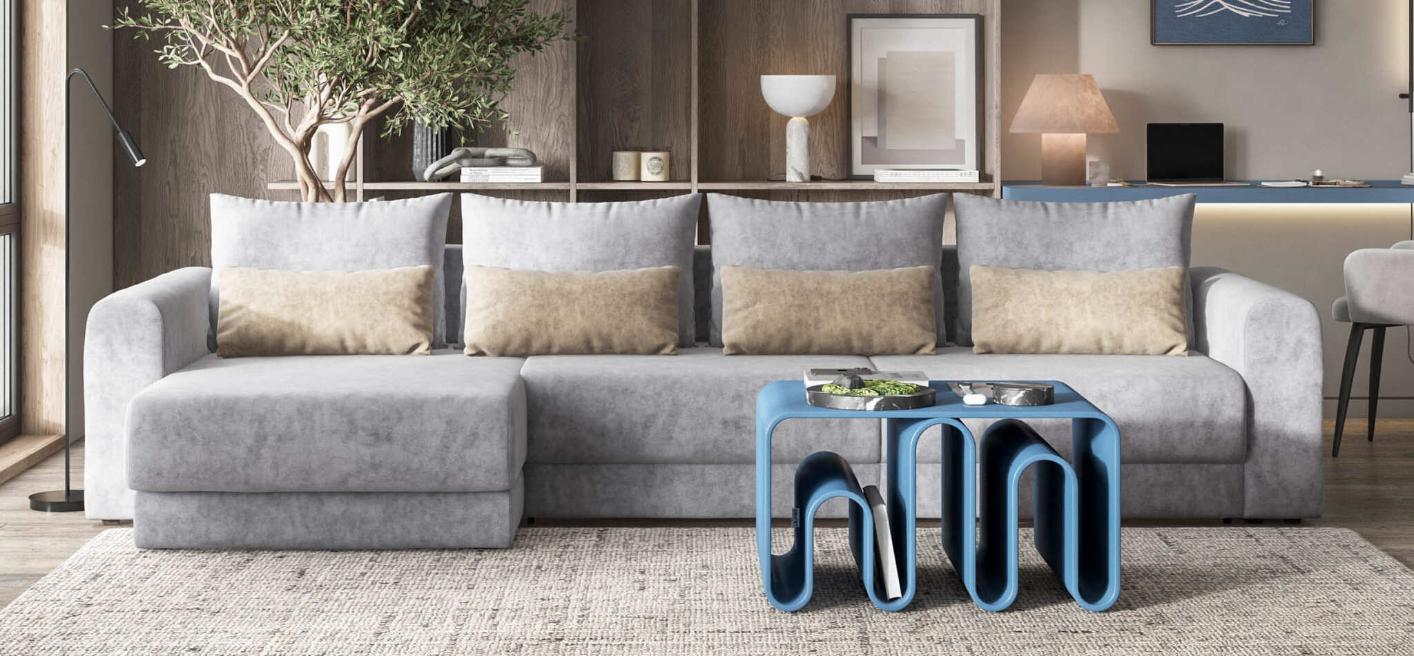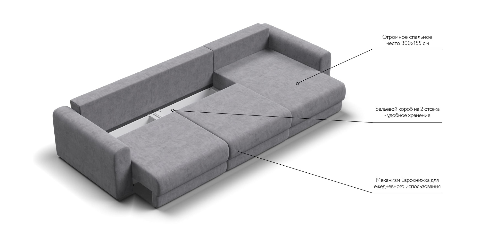Широкие скругленные подлокотники, плавные линии и приспинные подушки разного размера - стильный комфорт в каждой детали.Модульная система позволит создать любую комбинацию от уютного кресла до огромного дивана для большой компании.Простой и надежный механизм еврокнижка с легкостью превратит модульную систему в комфортное спальное место.
