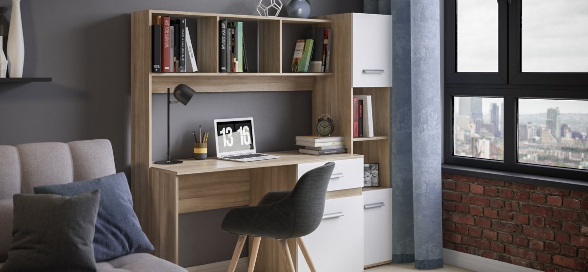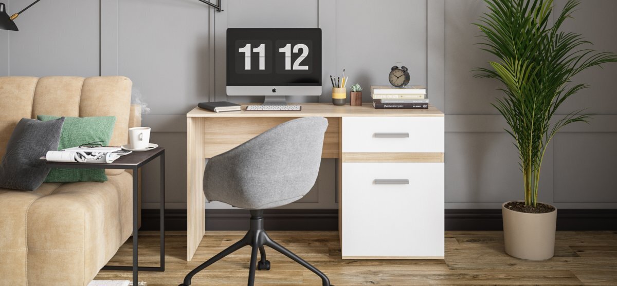 Практичные материалы облегчают уход за мебелью. Тумба вместит в себя рабочие материалы, а выкатной ящик на роликовых направляющих легко и просто откроет доступ к нужным мелочам. Идеальное рабочее место в домашних условиях!