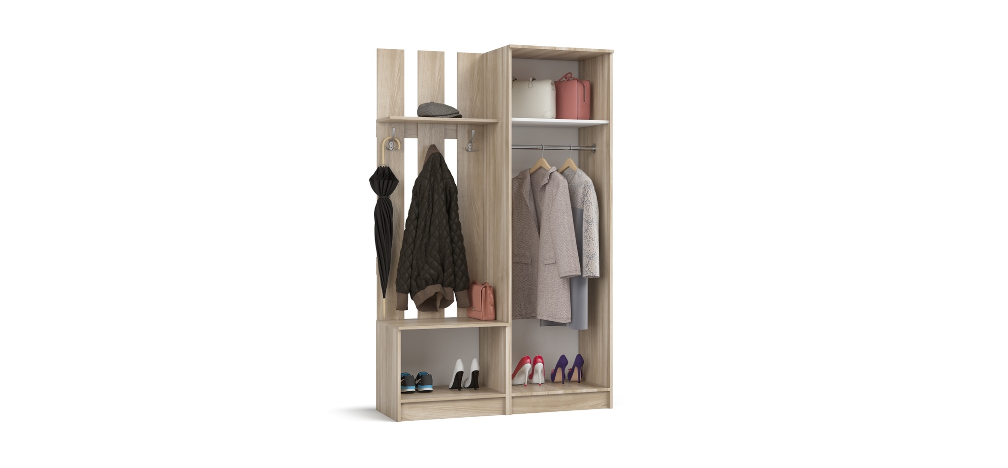 Прихожая НИК - многофункциональное решение в коридор. Теперь сезонная верхняя одежда и обувь всегда будут под рукой. Полноценный шкаф в составе прихожей вместит Вашу сезонную одежду. Ящик для обуви компактно разместит вашу обувь.