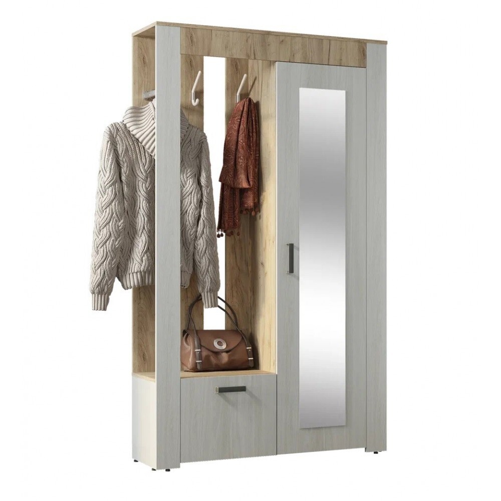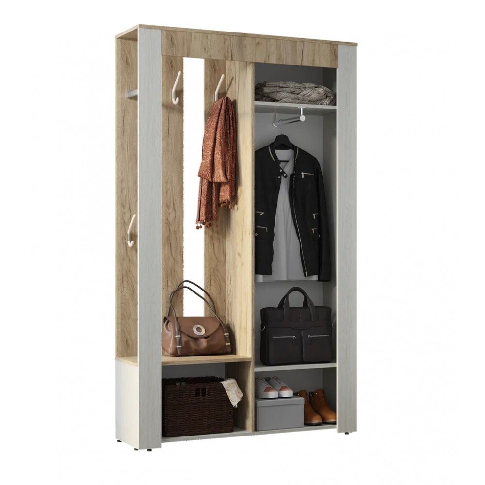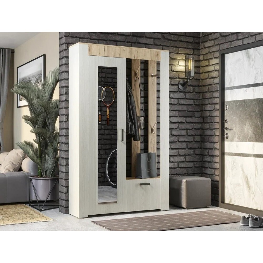 Стильная прихожая Франк – станет украшением вашей входной зоны.модель имеет современный дизайн.наполнение представляет собой распашной шкаф со встроенным в дверцу зеркалом, открытую нишу с крючками для верхней одежды и отделение для хранения обуви,контрастное сочетание качественной ЛДСП в цветах венге и лоредо, из которого выполнена прихожая, добавляет ей стиля и позволяет вписаться в любой интерьер.Цвет корпуса/цвет фасадавенге/лоредоШирина, мм1202Высота, мм2000Глубина, мм330Материал корпусаЛДСПУниверсальная сборка (на обе стороны)ДаМатериал фасадаЛДСП