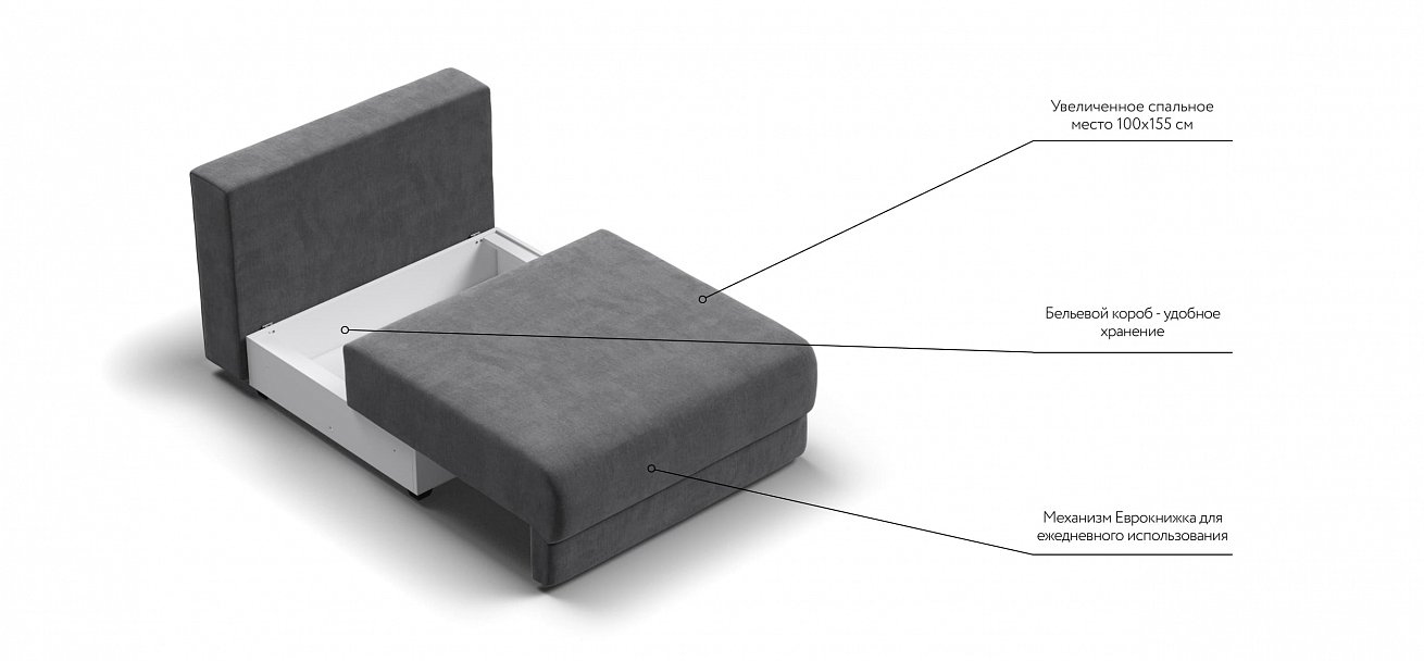 Простой и надежный механизм еврокнижка с легкостью превратит модульную систему в комфортное спальное место.
