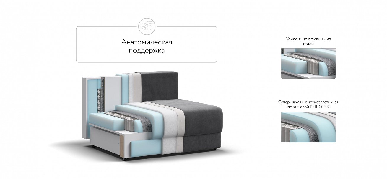 Ричмонд Модуль – Модульная система для комфортного отдыха. Суперудобная глубокая посадка и высокоэластичная пена с дополнительным слоем Периотек создадут максимальный комфорт во время отдыха.