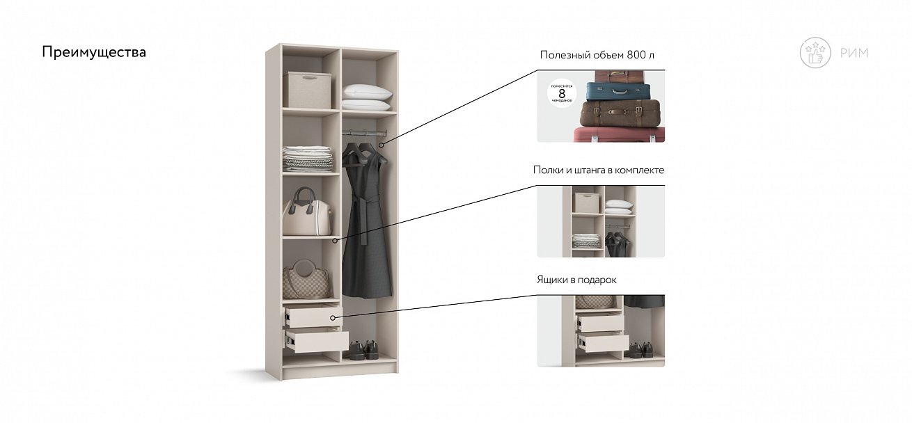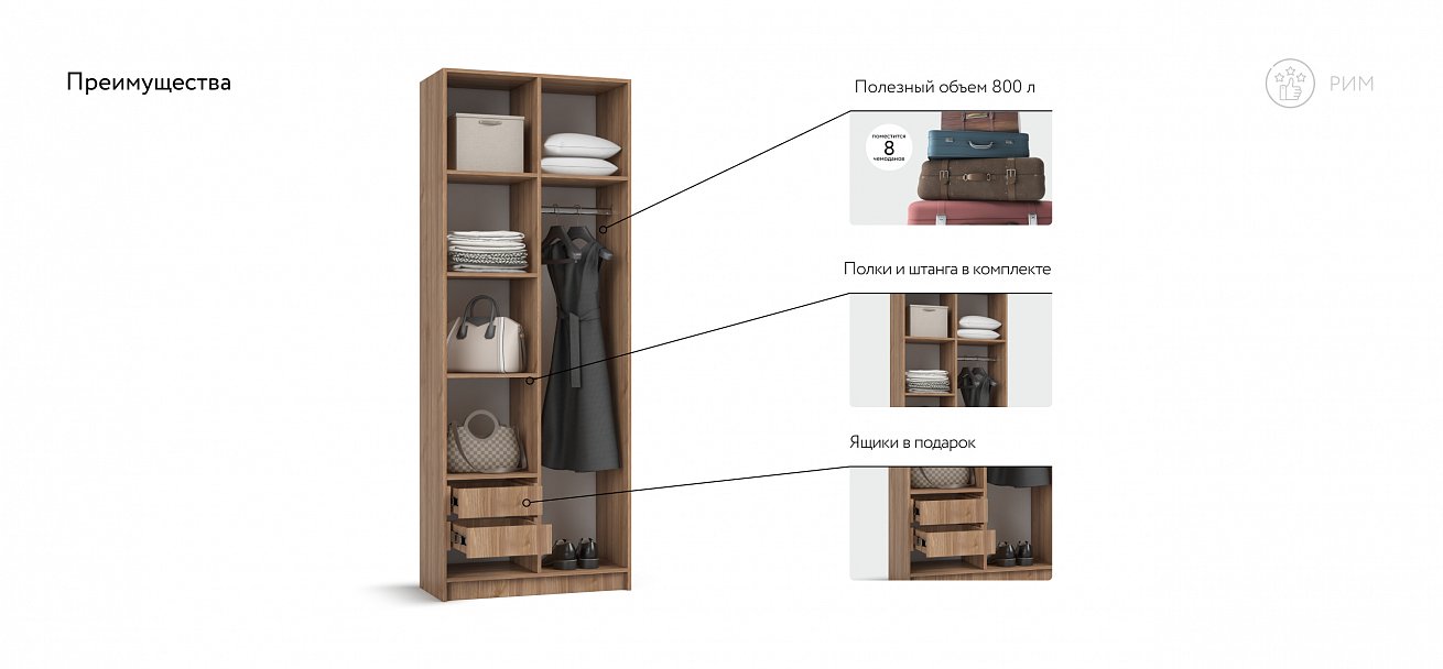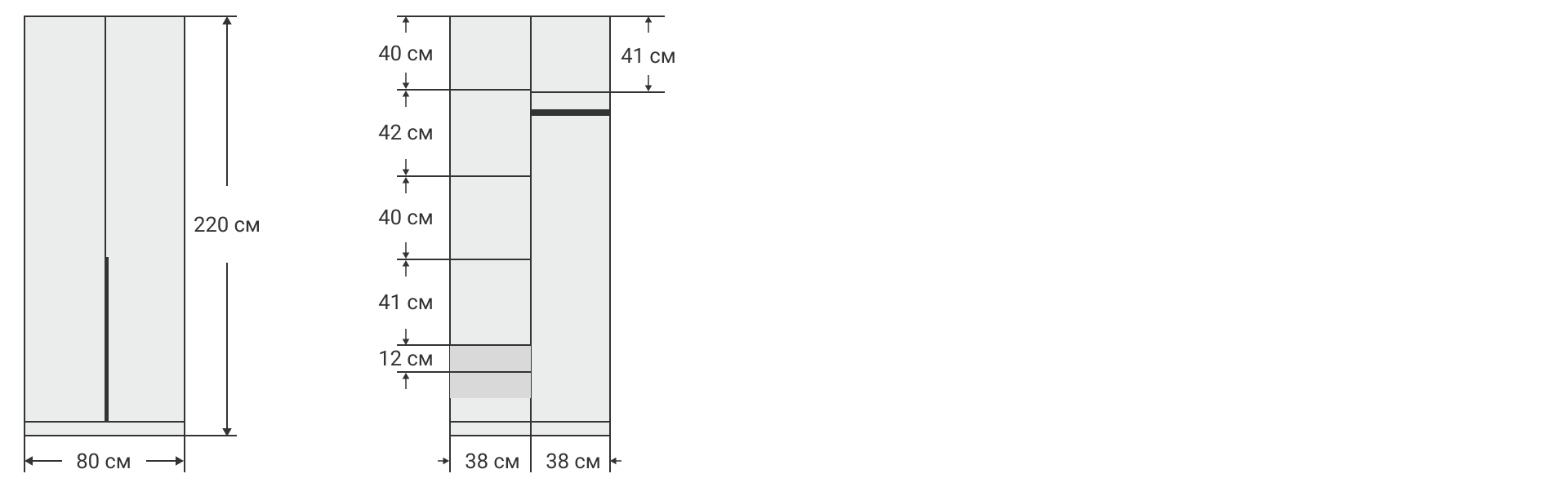 Габариты (ШхГхВ) 80x53x220 см