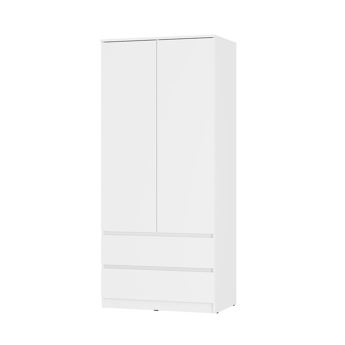 Шкаф двухстворчатый «Симпл» (ШК-03) — минималистичный двухстворчатый шкаф станет хорошим дополнением как к классическому, так и к современному интерьеру. В двух выдвижных ящиках удобно хранить обувь или белье. За распашными дверцами размещена штанга для хранения верхней одежды.