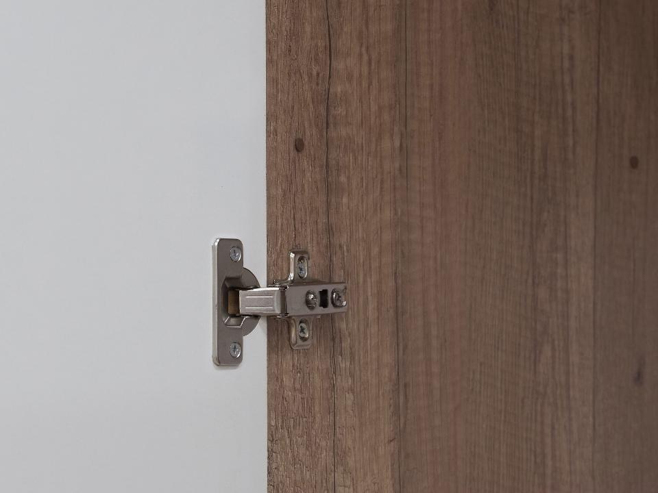 С умом использовать пространство поможет угловая модель шкафа Наоми из одноименной модульной серии. Изделие выполнено из ЛДСП, фасад распашной дверцы состоит из МДФ белого цвета и имеет встроенную ручку. Внутри шкаф разделен на две зоны для размещения одежды на вешалках и хранения сложенных вещей на полках.