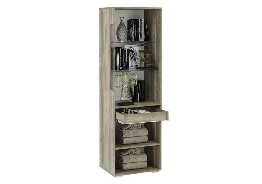Шкаф распашной из серии Наоми – красивое решение для современного интерьера. Он прекрасно будет смотреться в вашей гостиной. В нем можно разместить предметы декора, посуду, книги и другие вещи. Модель оснащена распашными дверцами и выдвижным ящиком на роликовых направляющих. Фасады изготовлены из МДФ белого цвета. В верхнюю створку вставлено тонированное стекло, что придает модели легкости и стиля.