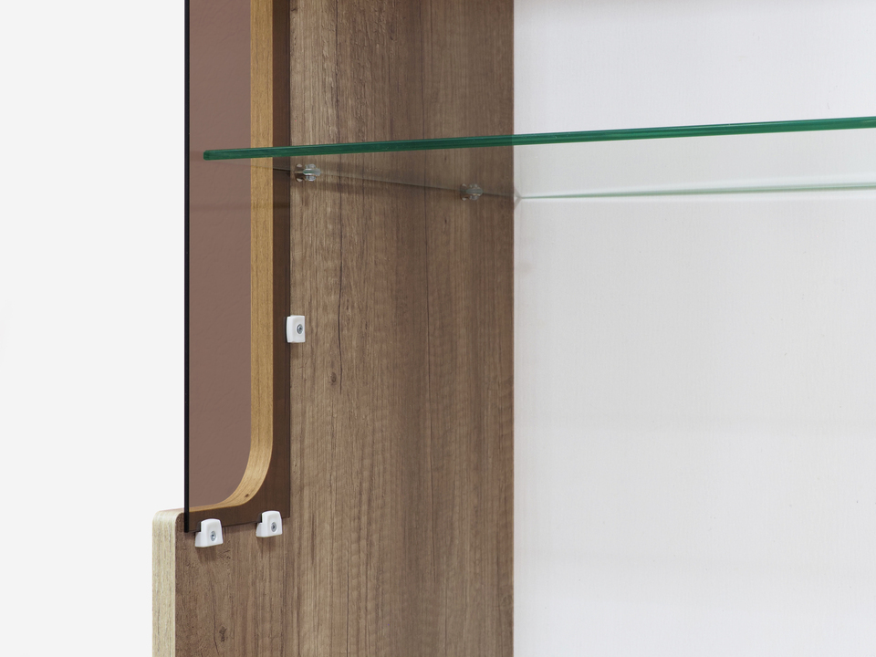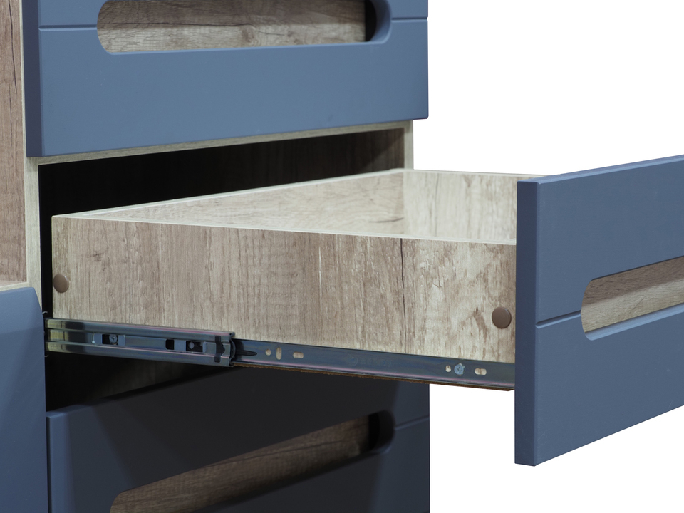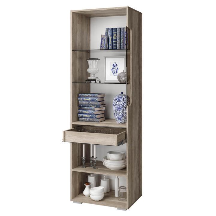 В нем можно разместить предметы декора, посуду, книги и другие вещи. Модель оснащена распашными дверцами и выдвижным ящиком на роликовых направляющих.