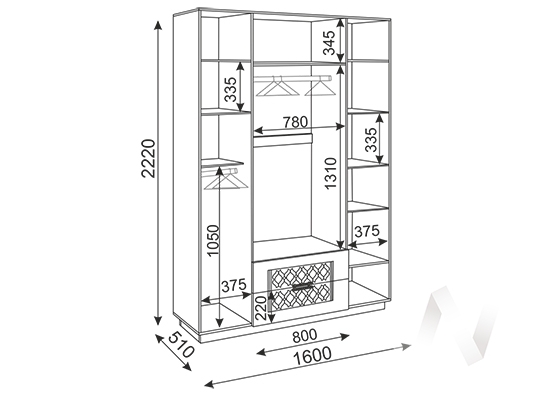 Шкаф с ящиками 4 двери М28 Спальня Тиффани