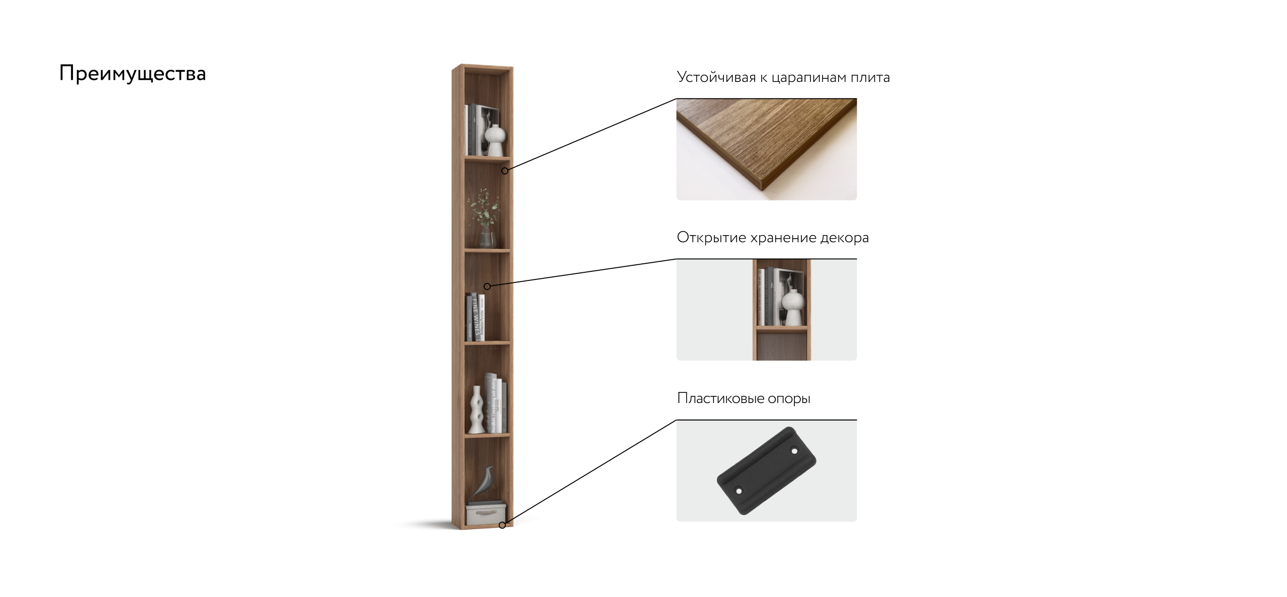 Стеллаж Boss – вечная классика для удобного хранения вещей. Практичный и вместительный – он станет отличным дополнением в спальню, детскую или прихожую. Полки открытого типа позволят демонстрировать любимые сувениры, цветы и книги.