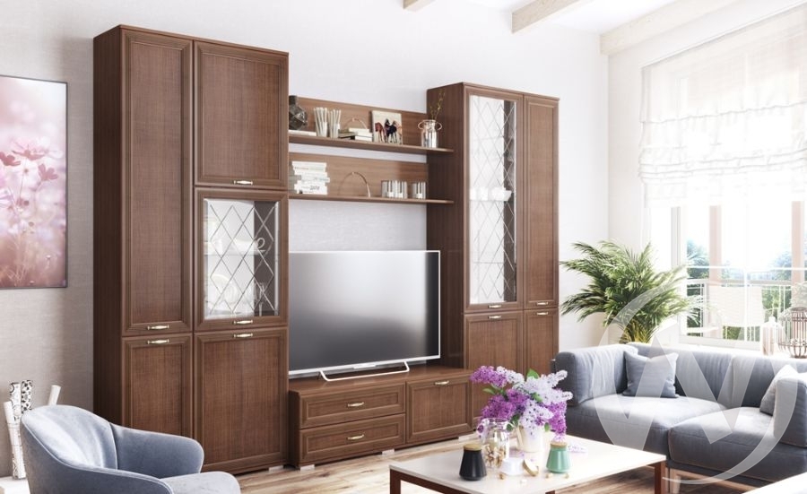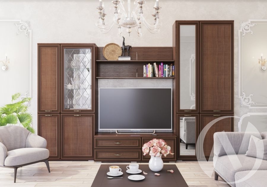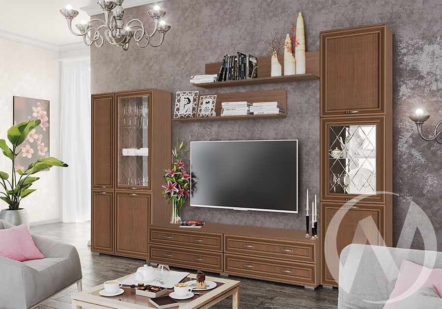 Стенка «Ливорно» станет модернизированным вариантом классической советской стенки. При внешней простоте форм стенка будет отличным выбором для любителей интерьерных решений без излишеств. Стеклянные дверцы оформлены чётким геометрическим рисунком, имитирующим ромбообразную плитку. В общей выдержанности стиля этот орнамент не станет лишним, а наоборот подчеркнёт шарм и изысканность модели. Мебельный комплект оснащён тумбой под ТВ-оборудование, имеющей четыре глубоких выдвижных ящика, шкафом с полками и витриной, на которых традиционно можно расположить набор домашней стеклянной посуды, пеналом с витриной и двумя навесными полками, которые станут уместным дополнением мебельного комплекта и не перегрузят модель. Стенка «Ливорно»- это сочетание традиционных решений и современных европейских тенденций.