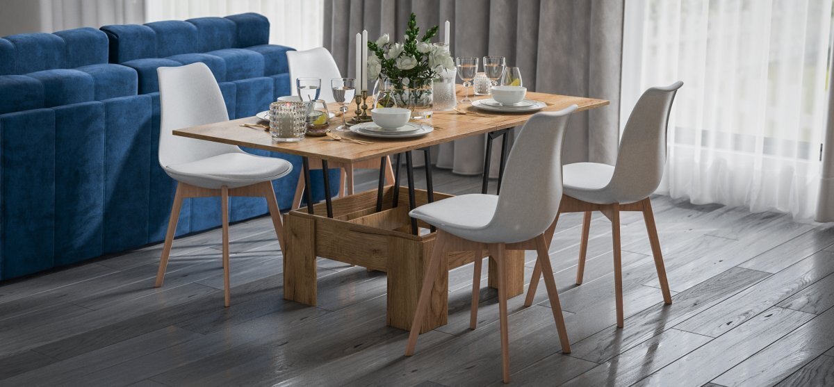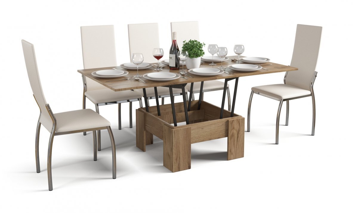 Стол-трансформер – практичное приобретение, выполняющее двойную функцию. В сложенном виде он служит журнальным или письменным столом, занимающим очень немного места в гостиной, а с разложенной столешницей превращается в обеденный стол на 8 персон. Стол оснащен надежным механизмом раскладки и улучшенными креплениями.