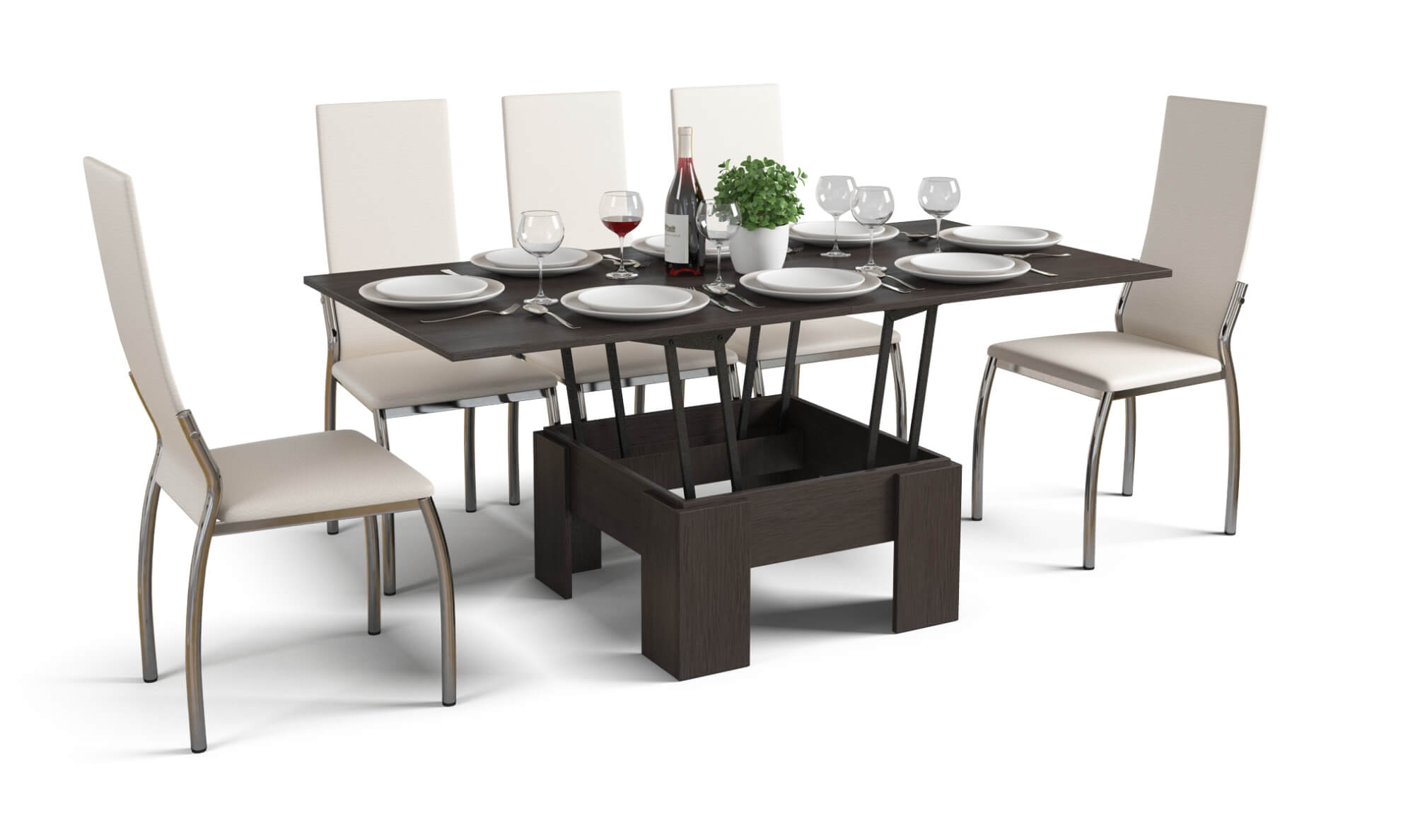 Стол-трансформер – практичное приобретение, выполняющее двойную функцию. В сложенном виде он служит журнальным или письменным столом, занимающим очень немного места в гостиной, а с разложенной столешницей превращается в обеденный стол на 8 персон. Стол оснащен надежным механизмом раскладки и улучшенными креплениями.
