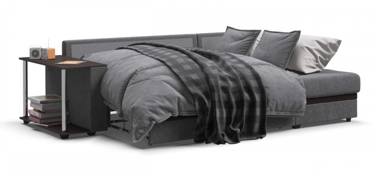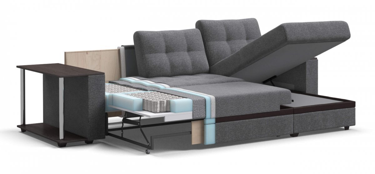 Не прилагая особых усилий, диван легко превратить в комфортную двуспальную кровать с идеально ровным спальным местом. Выкатная часть выполнена на независимом пружинном блоке, обивка в основной ткани. Задняя часть спинки дивана частично выполнена в технической ткани