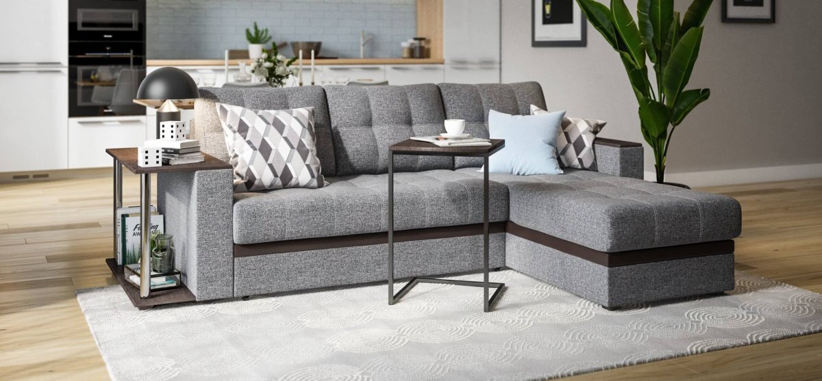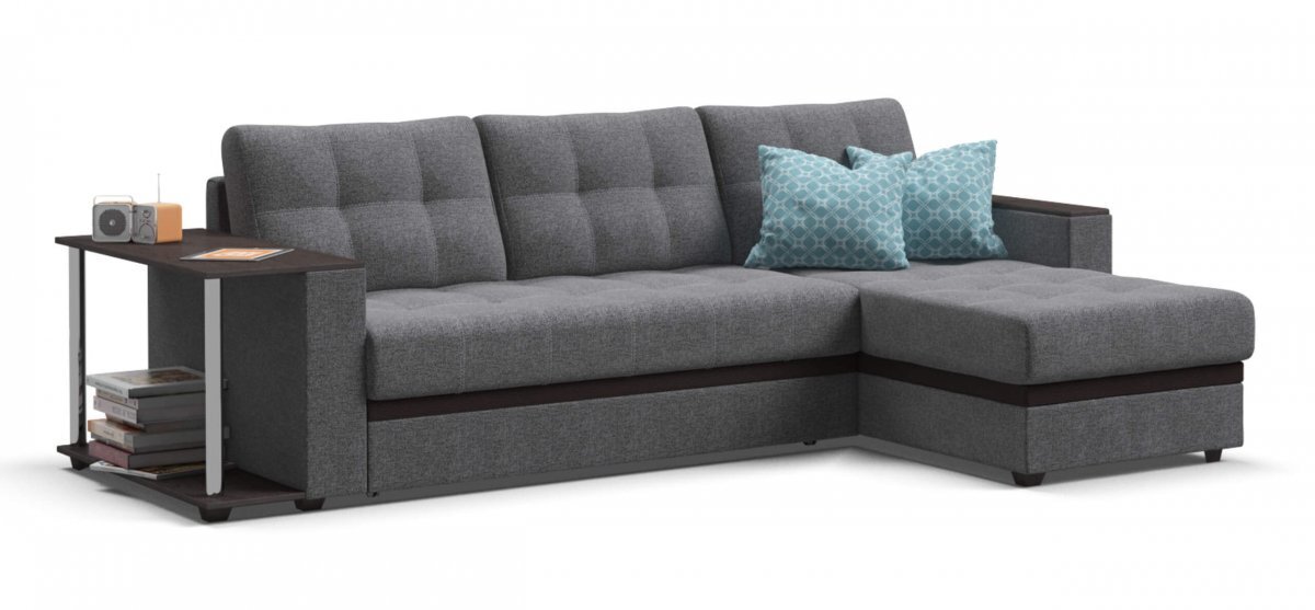 Угловой диван Атланта, благодаря своему элегантному и практичному дизайну, замечательно дополнит интерьер Вашей гостиной. Надежный и простой механизм трансформации Дельфин идеален для постоянного использования и выдерживает большие нагрузки. Модель оснащена прорезиненными колесиками, что обеспечит вам легкость раскладки и обезопасит от повреждений напольное покрытие.