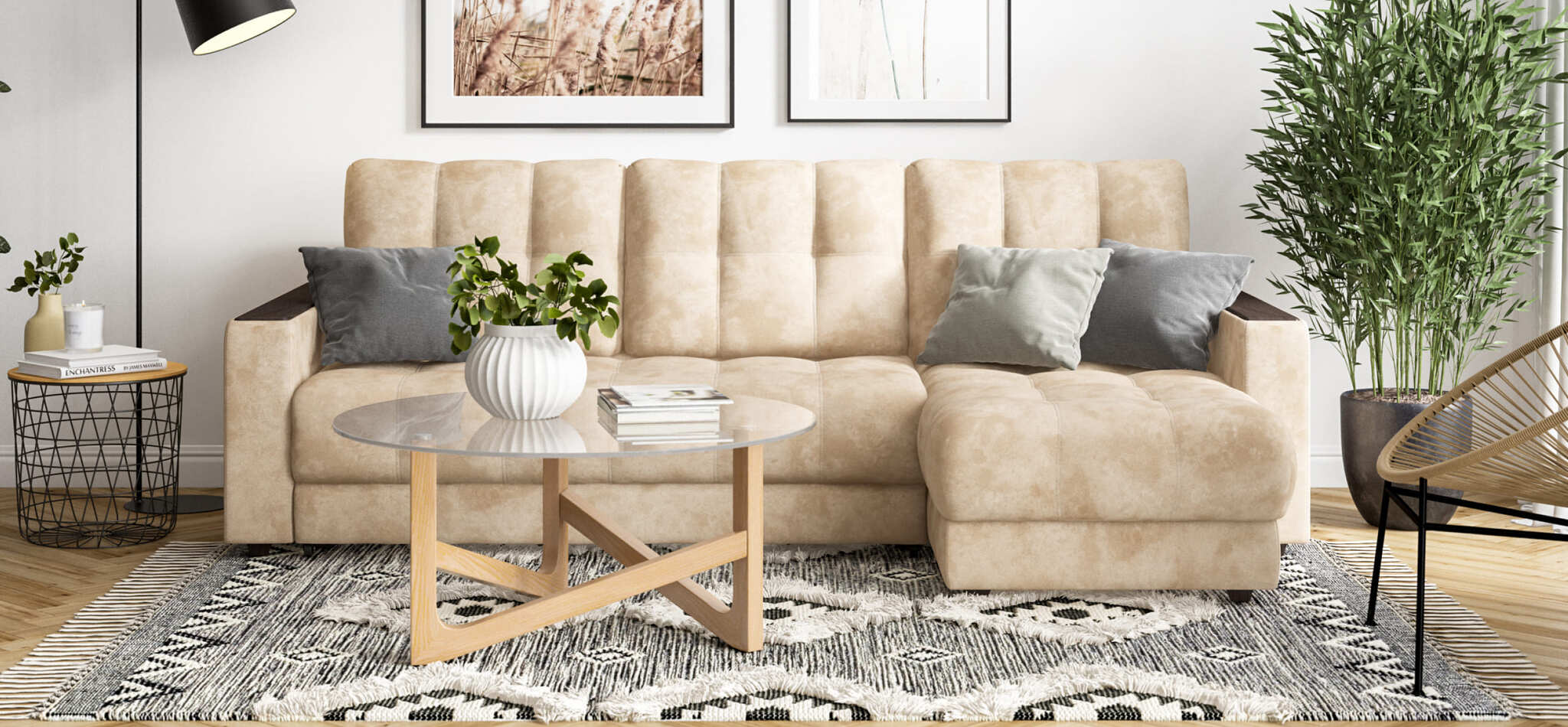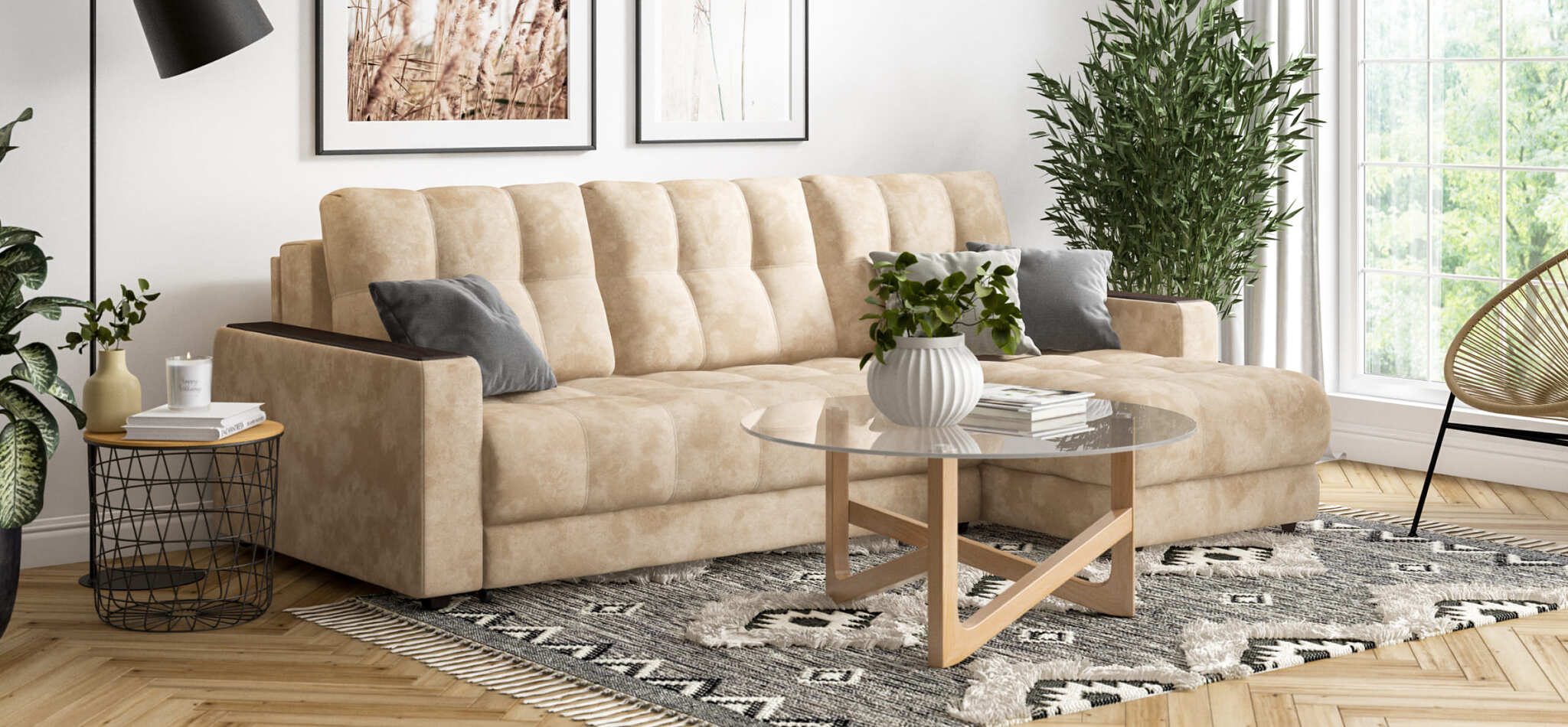 Угловой диван BOSS 3.0 Classic XL велюр Alkantara пепел