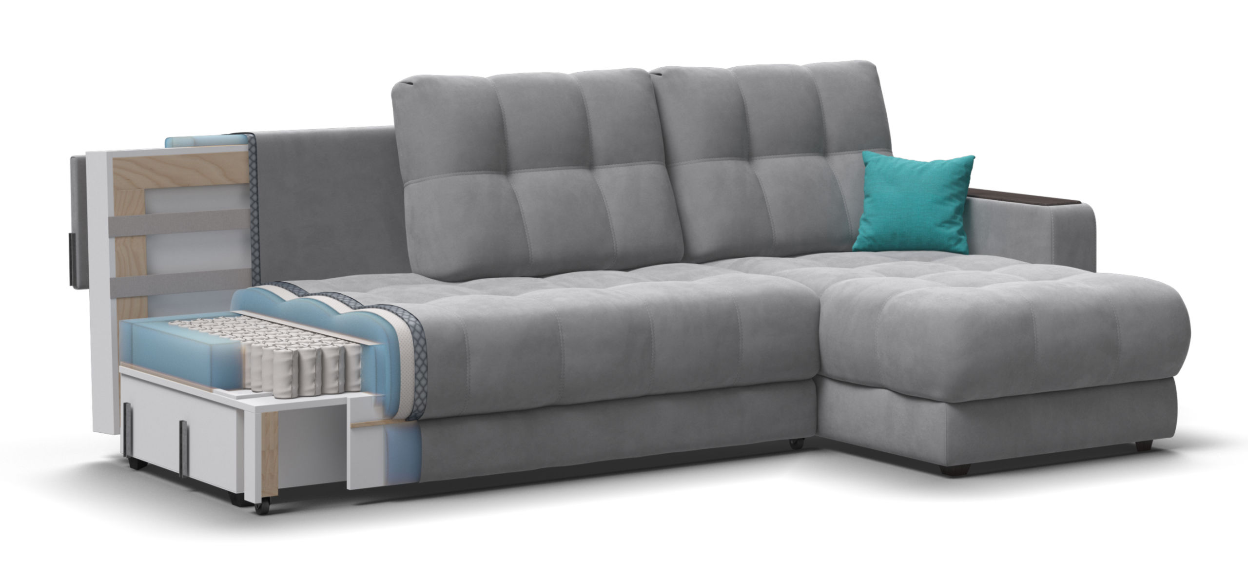 Продуманный до мелочей диван Босс сочетает в себе мягкие ткани, надежный каркас, качественное наполнение матраса и быструю сборку за 1 минуту без инструментов - ощутите комфорт у себя дома!