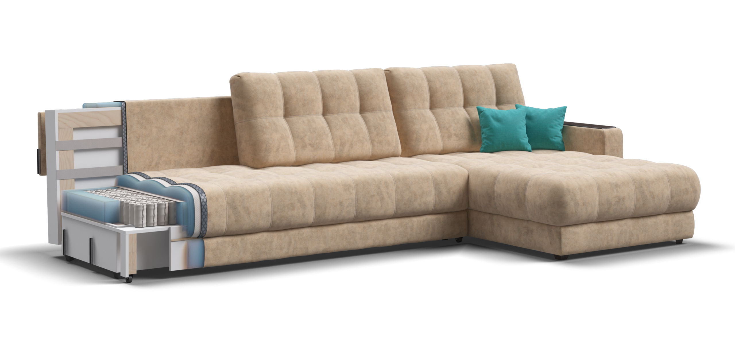 Угловой диван Босс Макс - большой, стильный и комфортный диван, предназначенный для просторной комнаты.