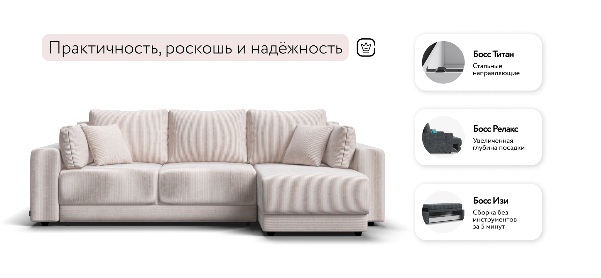 Угловой диван Босс Прайм ХЛ Вельвет Корд бежевый – купить за 119 000 ₽ | Альфамебель